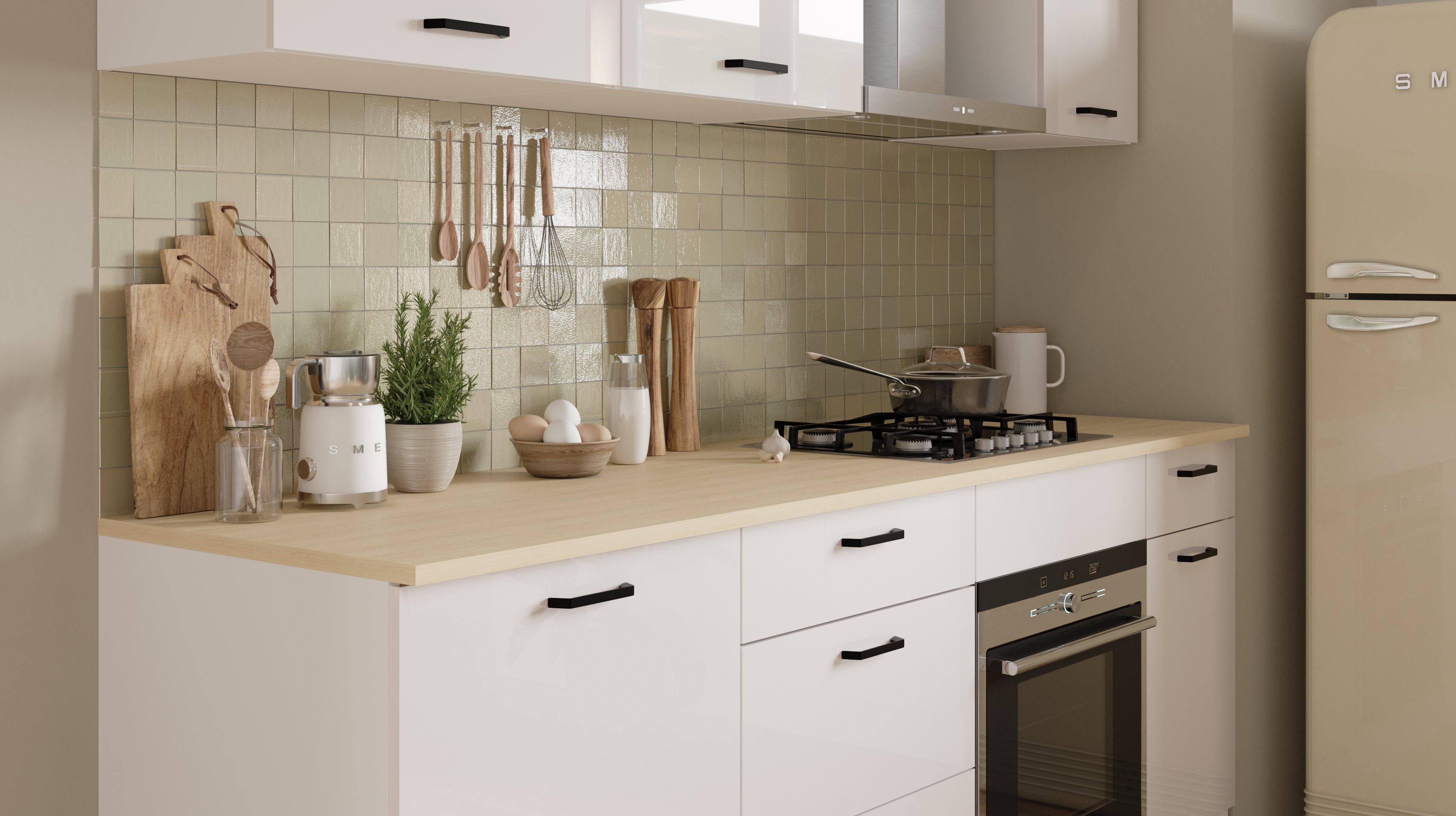 Zahvaljujući sjajnoj bijeloj fronti ormarić Bianco 4 lako se kombinira s drugim elementima iz linije Bianco ili drugim bijelim kuhinjskim modulima. Površina u visokom sjaju reflektira svjetlost i vizualno povećava prostor, što je posebno važno u manjim kuhinjama. Kombinacija sjajne bijele s detaljima u imitaciji drveta stvara ugodan kontrast koji djeluje suvremeno i domaće u isto vrijeme. Ormarić je namijenjen za postavljanje ispod radne ploče ili kao samostalni modul u nizu donjih elemenata.