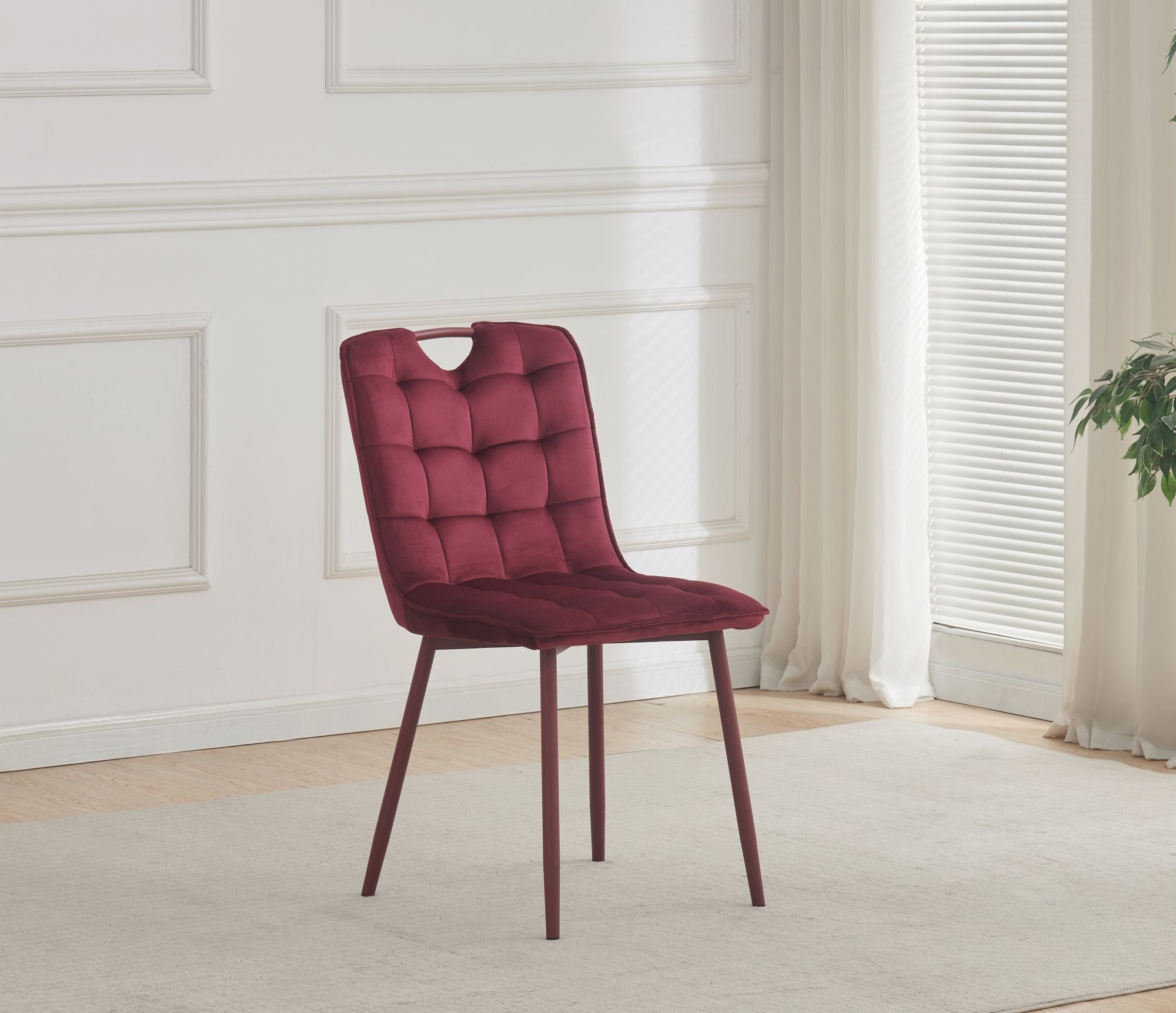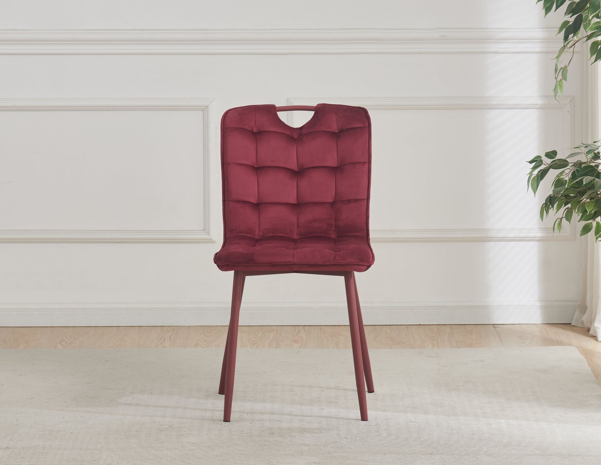 Crvena boja stolice Milik stvara izraženi vizualni naglasak u prostoru. Takva nijansa djeluje energično i toplo, pa se lijepo uklapa u različite stilove uređenja – od suvremenog minimalističkog do klasičnijeg. Stolicu možete koristiti kao samostalan komad ili ju kombinirati s blagovaonskim stolom u neutralnim tonovima, gdje će crvena boja stvoriti ugodan kontrast. Budući da stolica nije rastezljiva, zadržava jednostavan i kompaktan oblik, što olakšava postavljanje i premještanje.