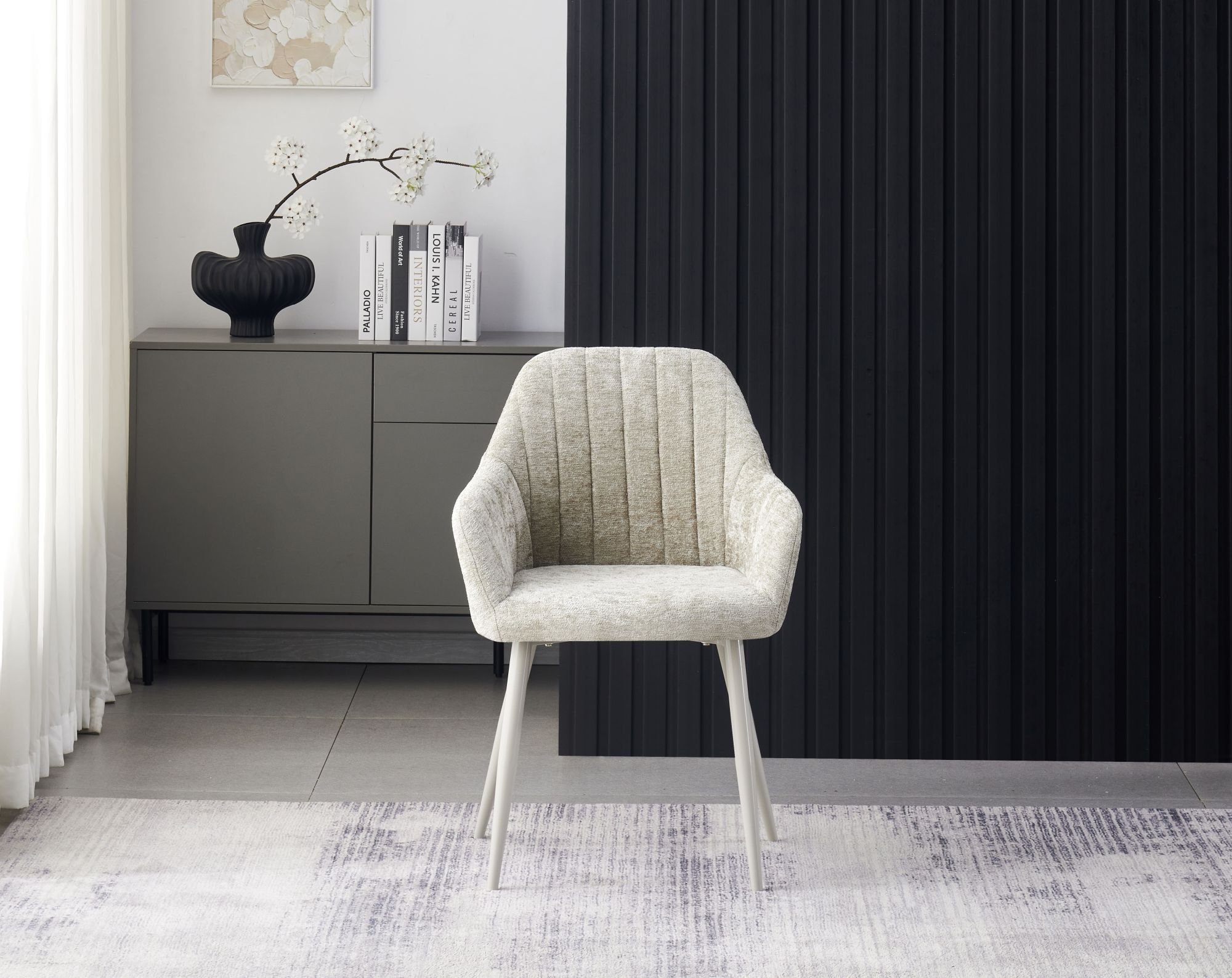 Osnova stolice je metalni okvir izrađen od cijevi promjera 32 mm i debljine stijenke 1 mm. Takva konstrukcija osigurava iznimnu čvrstoću i trajnost, što znači da će stolica pouzdano služiti dugi niz godina. Okvir je praškasto obojen u nijansi cappuccina, što stvara harmoničnu povezanost s tapeciranim sjedalom. Kombinacija metala i tkanine pažljivo je odabrana jer omogućuje optimalan omjer između udobnosti, stabilnosti i vizualne lakoće.