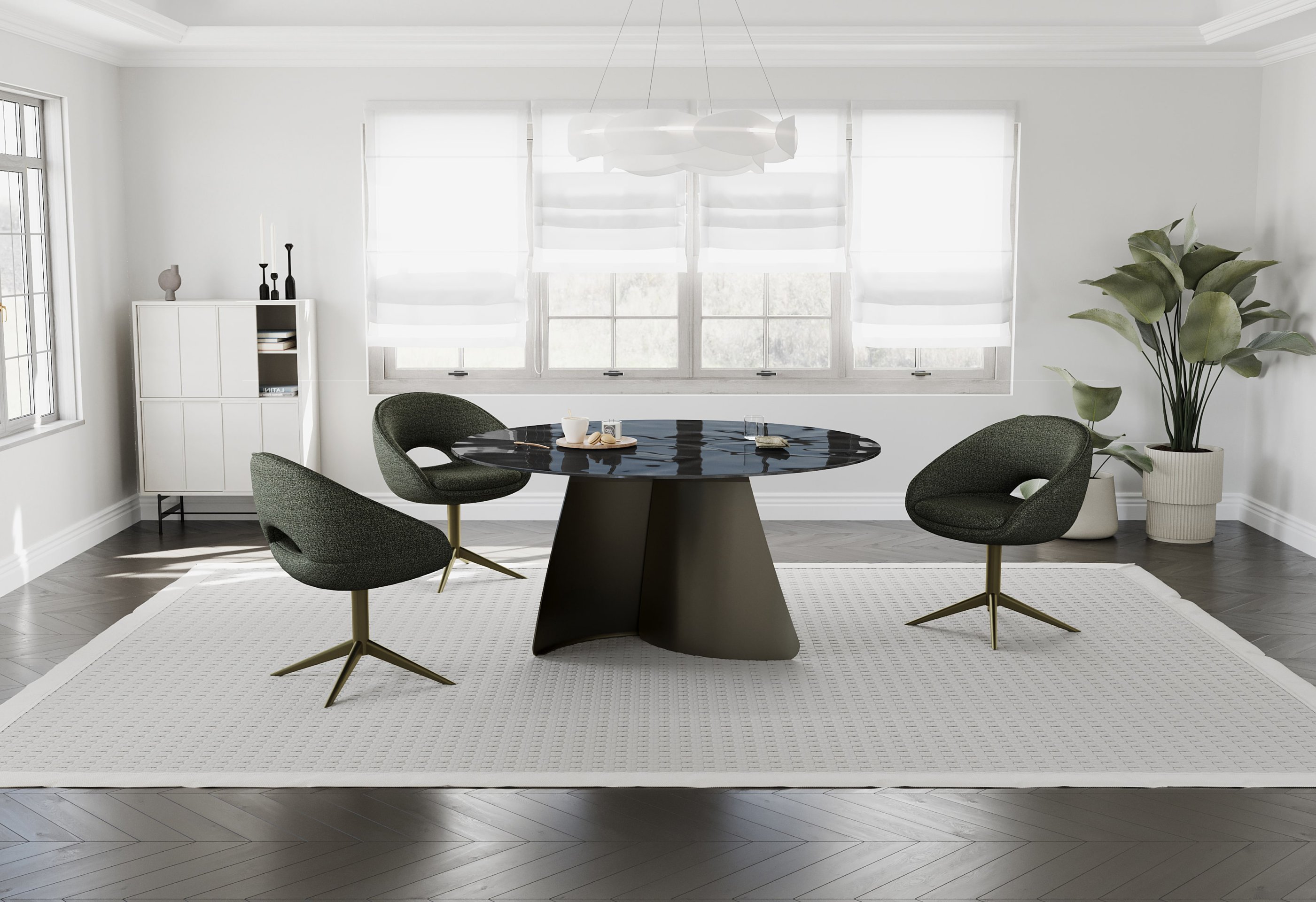 Rotirajuća stolica Borneo svestran je izbor za domaće i profesionalne prostore. Zbog svojeg 360° mehanizma omogućuje lakše okretanje, što je korisno pri radu za stolom ili pri razgovorima u grupi. Stolica se lijepo uklapa u moderne interijere, minimalističke koncepte ili prostore s prirodnim tonovima boja, jer zelena nijansa donosi osjećaj smirenosti i svježine.
