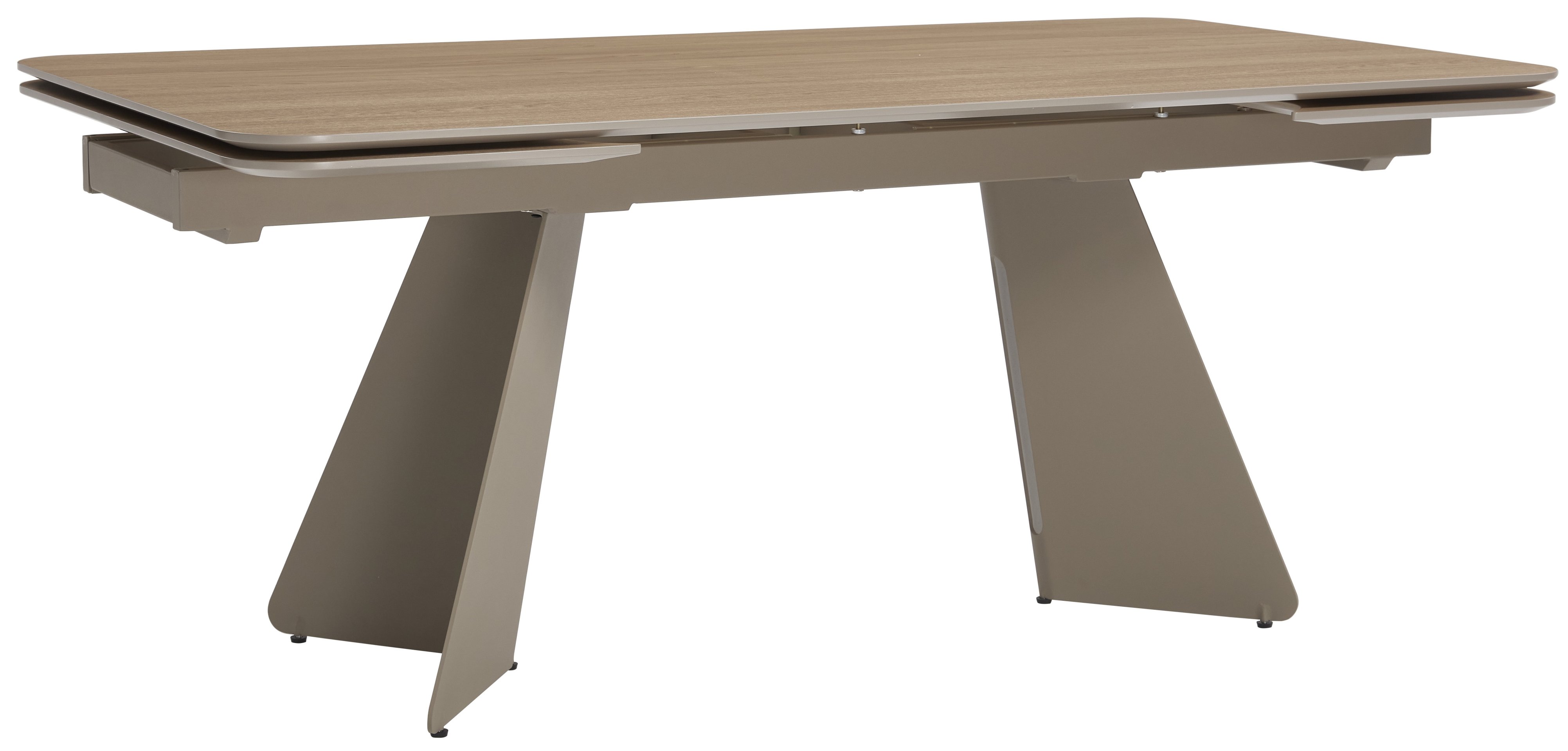 Stol je izrađen od kvalitetnog MDF materijala u kombinaciji s metalnim okvirom, što osigurava čvrstoću i stabilnost. Površina je završena u ugodnoj smeđoj boji, koja lijepo naglašava teksturu drvenog izgleda i lako se uklapa u različite stilove uređenja – od klasičnog do modernog. Okvir je dodatno obrađen s keramičkom površinom, što povećava otpornost na ogrebotine i olakšava održavanje. Takva kombinacija materijala omogućuje dugotrajnu uporabu bez vidljivih znakova trošenja čak i pri svakodnevnoj uporabi.