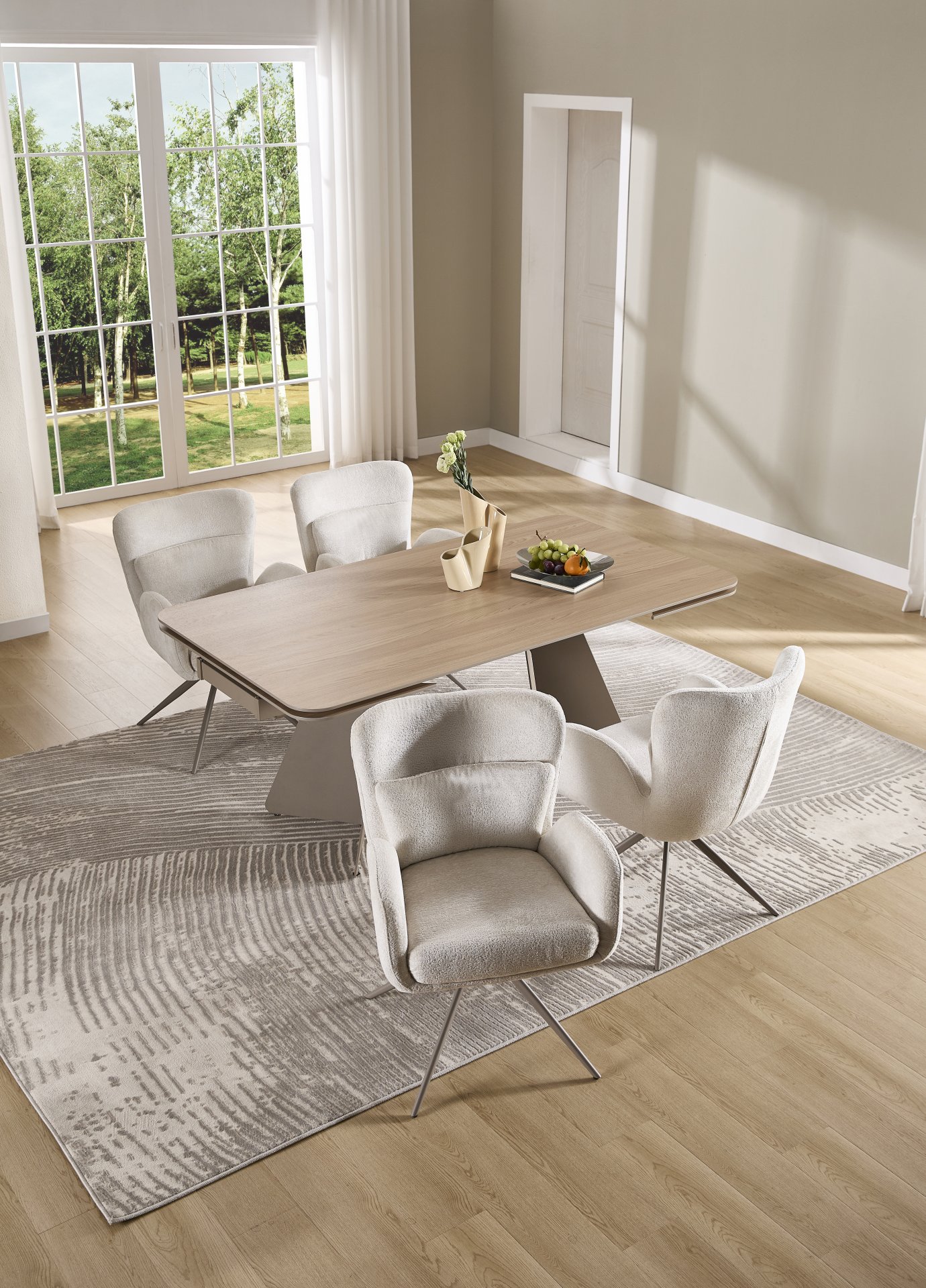 Blagovaonski stol na razvlačenje Linios izvrstan je izbor za sve koji traže kombinaciju praktičnosti, kvalitete i estetske savršenosti. Svojim prilagodljivim dizajnom i izdržljivim materijalima omogućuje udobnu uporabu u svakodnevnom životu te stvara ugodnu atmosferu u svakom domu.