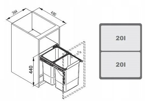 Koš za odvajanje otpada - JC 602 s tri posude za otpatke. Otvaranje uz automatske vodilice. Proizvod se ugrađuje u ormarić za sudoper širine najmanje 50 cm.