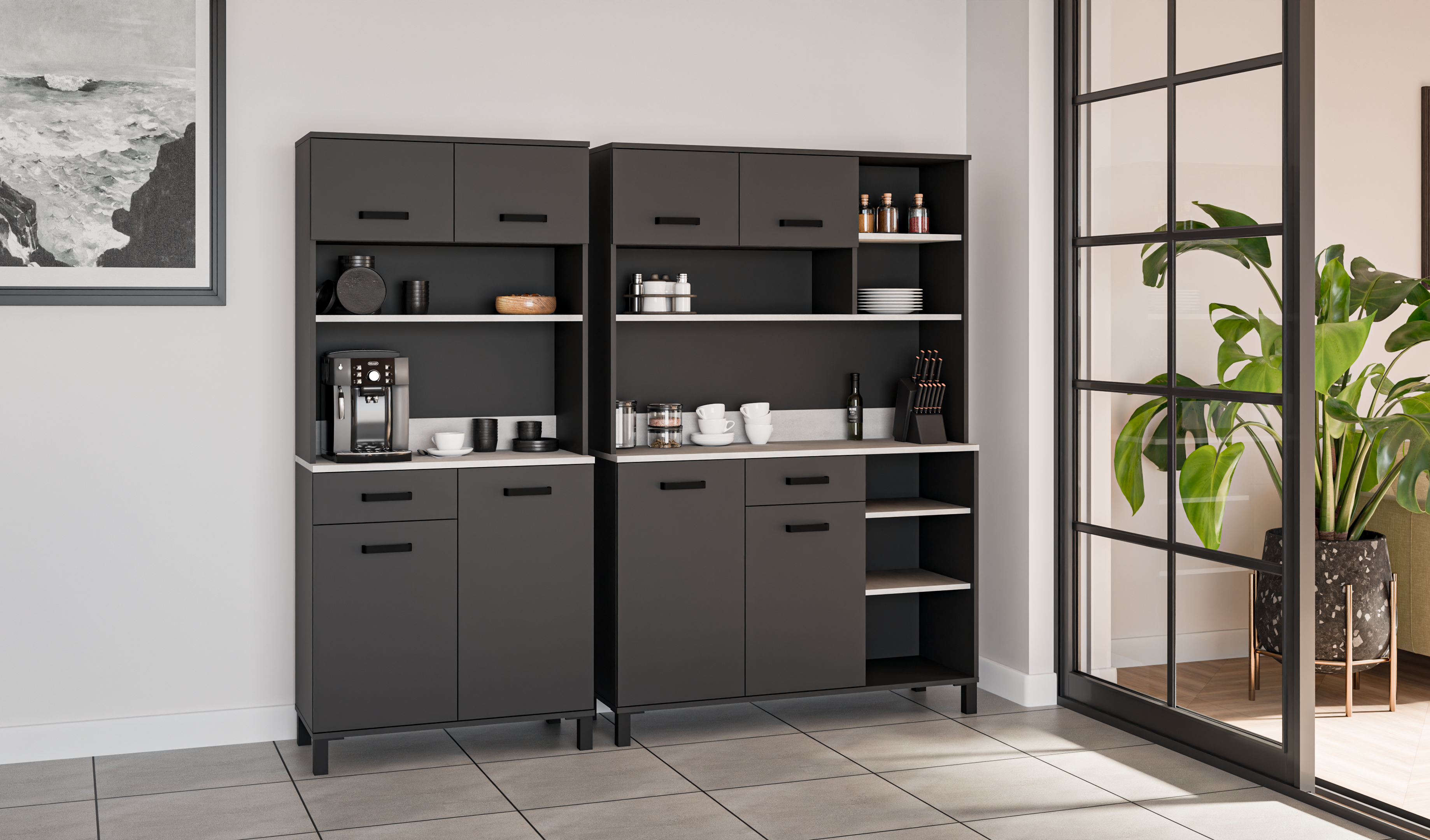 Crni mat rukohvati i crne mat noge pažljivo su odabrani detalji koji dodaju šik i suvremen dodir. Ovi elementi ne samo da poboljšavaju estetsku vrijednost ormara, već osiguravaju i funkcionalnost i udobnost pri upotrebi. Rukohvati su dizajnirani tako da omogućuju jednostavno otvaranje i zatvaranje vrata, dok noge osiguravaju stabilnost.