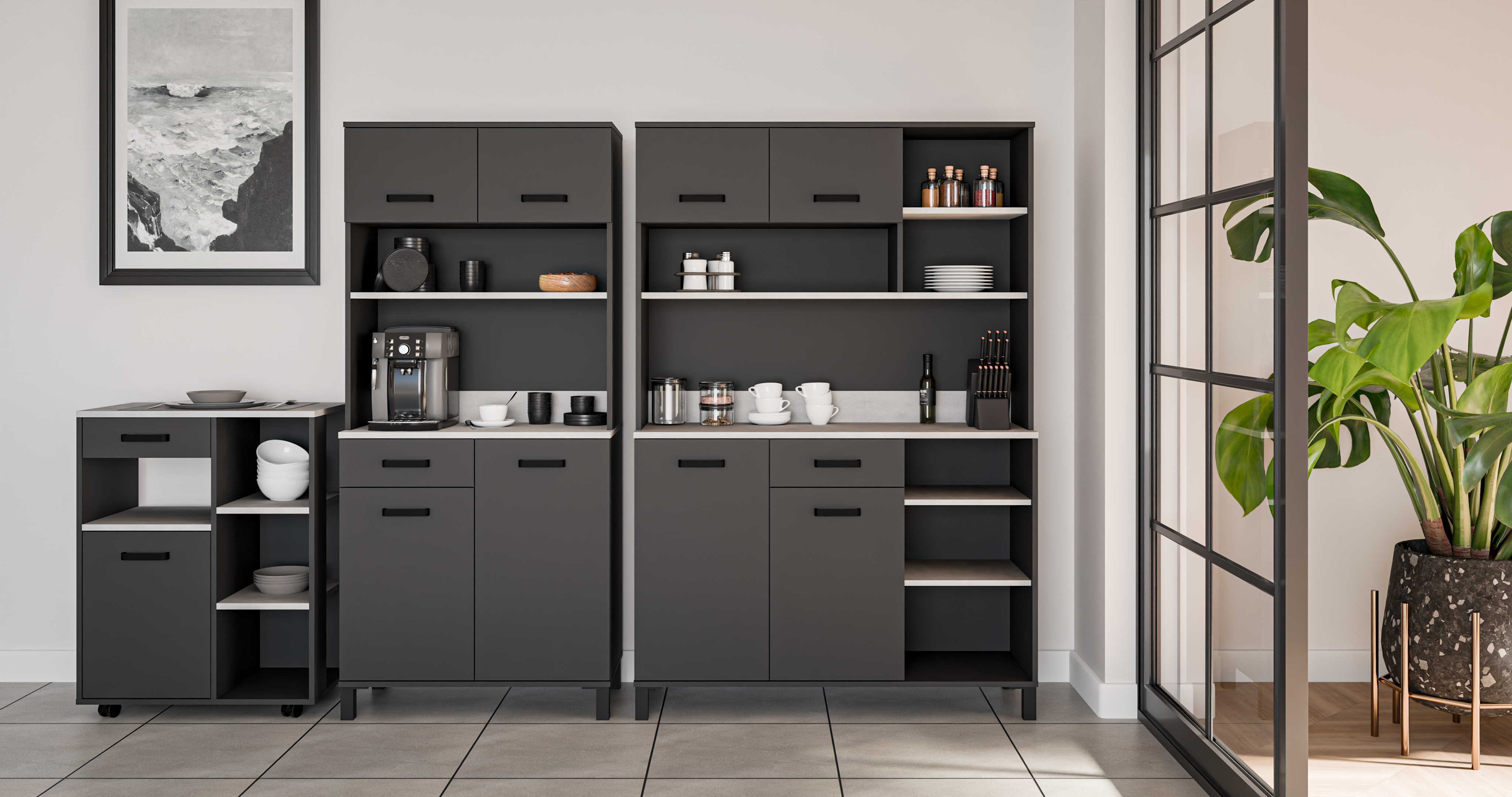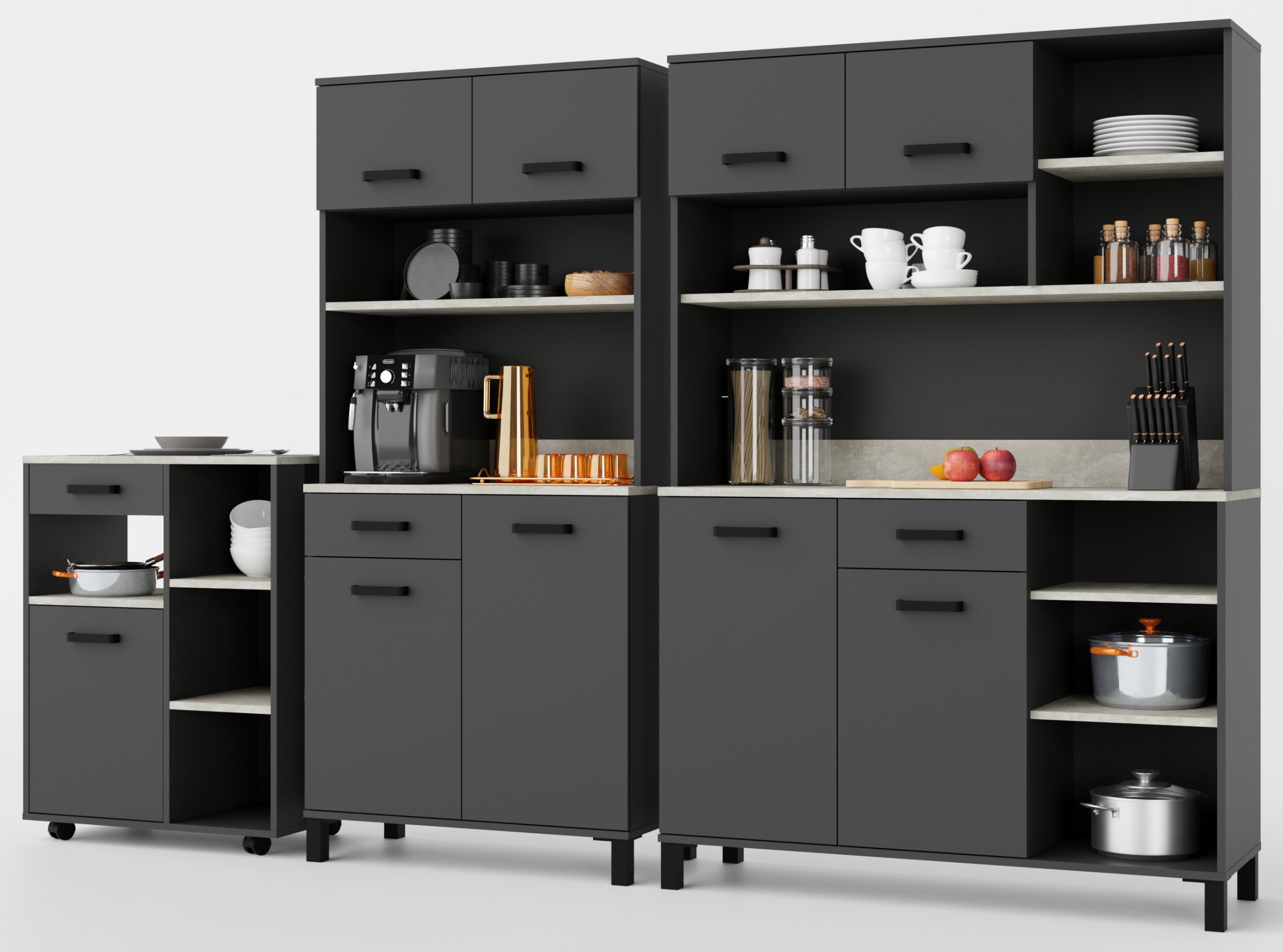 Ormar je dostupan u elegantnoj antracit boji, koja se lako uklapa s različitim stilovima unutarnjeg uređenja. Njegov minimalistički izgled, naglašen s crnim mat ručkama i nogama, daje mu moderan dodir koji će sigurno privući poglede. Rubovi su obrađeni s ABS-om, što osigurava dodatnu zaštitu od habanja te produžuje vijek trajanja namještaja.