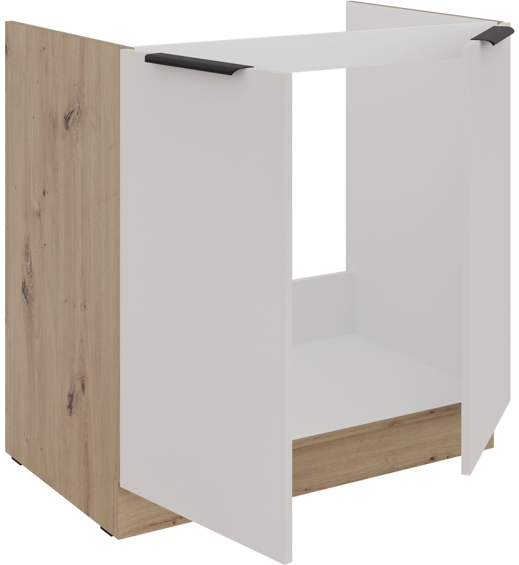 Kuhinjski sastav Solea odlikuje se visokokvalitetnim materijalima i promišljenom shemom boja. Okvir od laminirane ploče debljine 16 mm osigurava izdržljivost i dugotrajnu uporabu, dok boja korpusa u nijansi artisan hrasta dodaje dašak prirodne topline. Fronta u elegantnom kašmiru pruža sofisticiran izgled koji se savršeno uklapa s modernim ili klasičnim dekorativnim elementima vašeg doma.