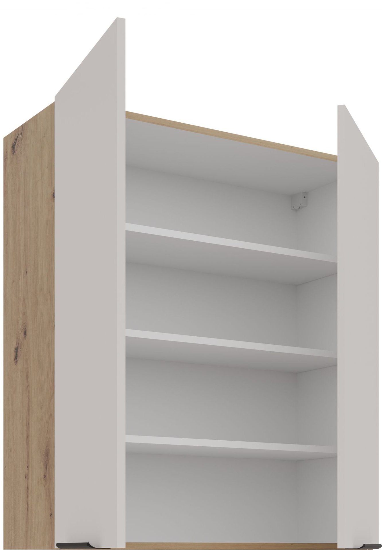 Kuhinjski sastav Solea odlikuje se visokokvalitetnim materijalima i promišljenom shemom boja. Okvir od laminirane ploče debljine 16 mm osigurava izdržljivost i dugotrajnu upotrebu, dok boja korpusa u nijansi artisan hrasta dodaje dašak prirodne topline. Fronta u elegantnom kašmiru osigurava sofisticiran izgled koji se savršeno uklapa s modernim ili klasičnim dekorativnim elementima vašeg doma.