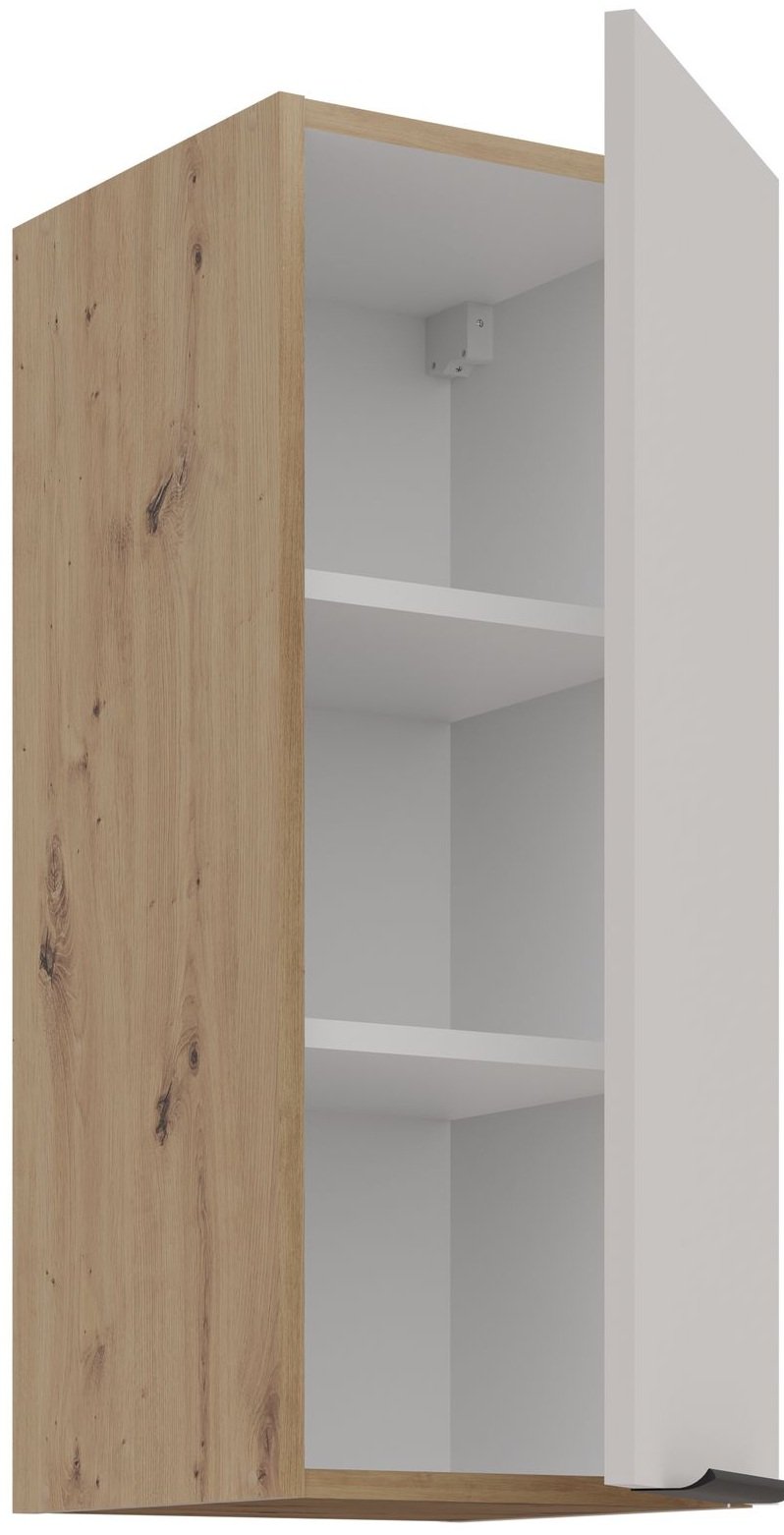 Kuhinjski sastav Solea odlikuje se visokokvalitetnim materijalima i promišljenom kolorističkom shemom. Okvir od laminirane ploče debljine 16 mm osigurava izdržljivost i dugotrajnu uporabu, dok boja korpusa u nijansi artisan hrasta dodaje dašak prirodne topline. Fronta u elegantnom kašmiru pak osigurava sofisticiran izgled koji se savršeno stapa s modernim ili klasičnim dekorativnim elementima vašeg doma.
