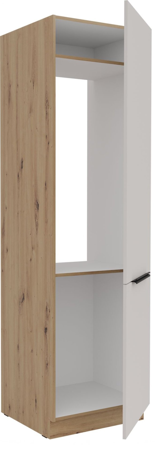 Kuhinjski sastav Solea odlikuje se visokokvalitetnim materijalima i promišljenom shemom boja. Okvir od laminirane ploče debljine 16 mm osigurava izdržljivost i dugotrajnu upotrebu, dok boja korpusa u nijansi artisan hrasta dodaje dašak prirodne topline. Fronta u elegantnom kašmiru pruža sofisticiran izgled koji se savršeno uklapa s modernim ili klasičnim dekorativnim elementima vašeg doma.