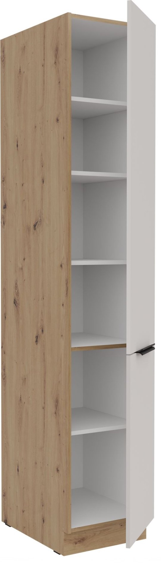 Kuhinjski set Solea odlikuje se visokokvalitetnim materijalima i promišljenom shemom boja. Okvir od laminirane ploče debljine 16 mm osigurava izdržljivost i dugotrajnu uporabu, dok boja korpusa u nijansi artisan hrasta dodaje dašak prirodne topline. Fronta u elegantnom kašmiru osigurava sofisticiran izgled koji se savršeno uklapa s modernim ili klasičnim dekorativnim elementima vašeg doma.