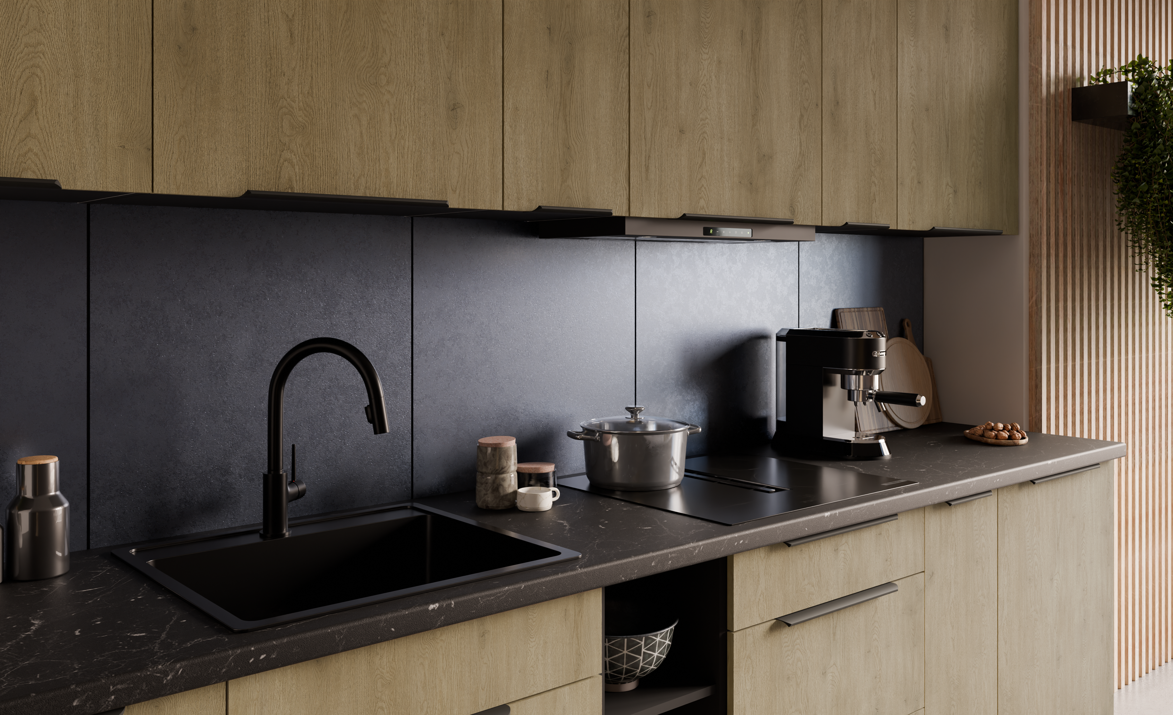 Posebna pozornost posvećena je detaljima, kao što je rubna ručka UA-HEXA od crnog aluminija, koja ne samo da odlično izgleda, već i omogućuje jednostavno i ugodno korištenje. Ručke su dostupne u dimenzijama od 64 mm do 320 mm, što omogućuje prilagodbu prema vašim željama.