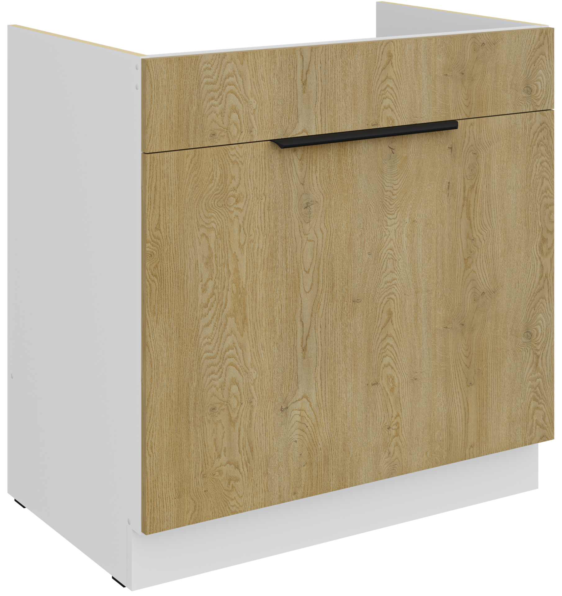 Korpus je završno obrađen melaminom, dok su fronte zaštićene ABS rubovima, što povećava otpornost na udarce i habanje. Sastav uključuje meko zatvaranje, koje sprječava glasno zatvaranje ladica i vrata, čime se održava mir i tišina u vašoj kuhinji.