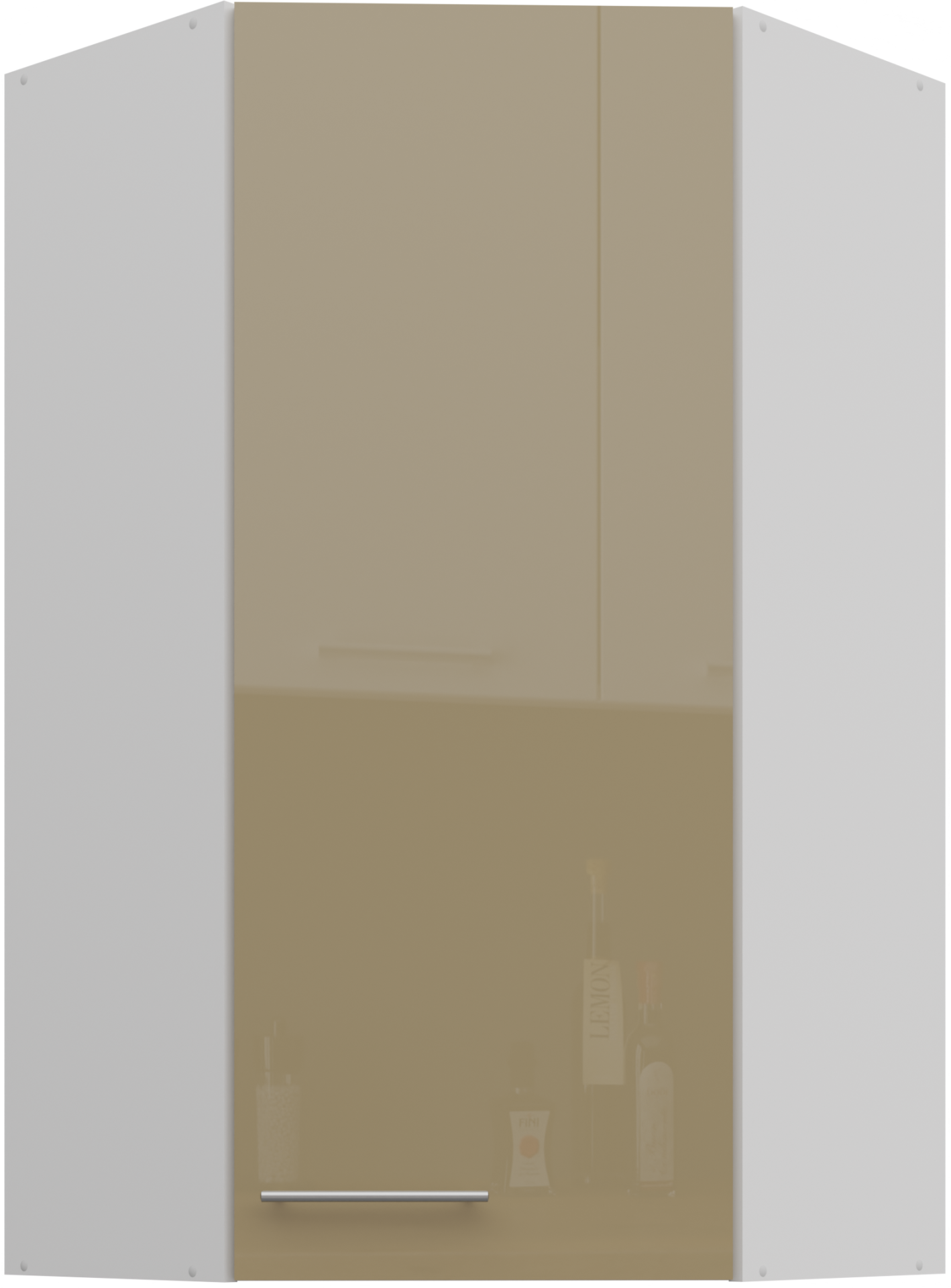 Savršena kuhinja je ona u kojoj se estetika i funkcionalnost spajaju u harmoniju. Upravo zato je gornji kutni ormarić Lara u elegantnoj nijansi cappuccina izvrstan izbor za svaki moderan dom. Svojim profinjenim izgledom, koji spaja toplinu boje kave s mlijekom i praktičan dizajn, donosi idealno rješenje za pohranu i organizaciju prostora u kuhinji. Dimenzije 60x31x107,5 cm omogućuju optimalno iskorištavanje kuta te istovremeno zadržavaju vizualnu lakoću prostora.