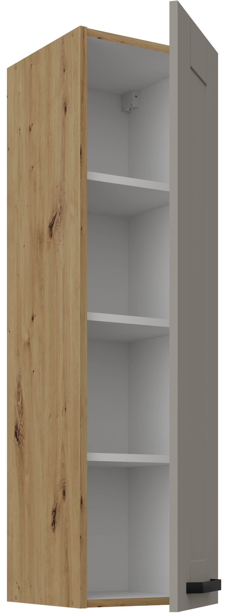 Elegantno i funkcionalno rješenje za svaku kuhinju, koje spaja moderan dizajn s toplinom prirodnih tonova. Gornji ormarić Luna u kombinaciji claygrey i hrast artisan savršen je izbor za sve koji žele praktičan prostor za pohranu, a istodobno estetski dovršen komad namještaja. Svojim kompaktnim dimenzijama 30x31x107,5 cm lako se uklapa i u manje kuhinje, pritom zadržavajući dovoljno prostora za vaše kuhinjske pribore, začine ili posuđe.