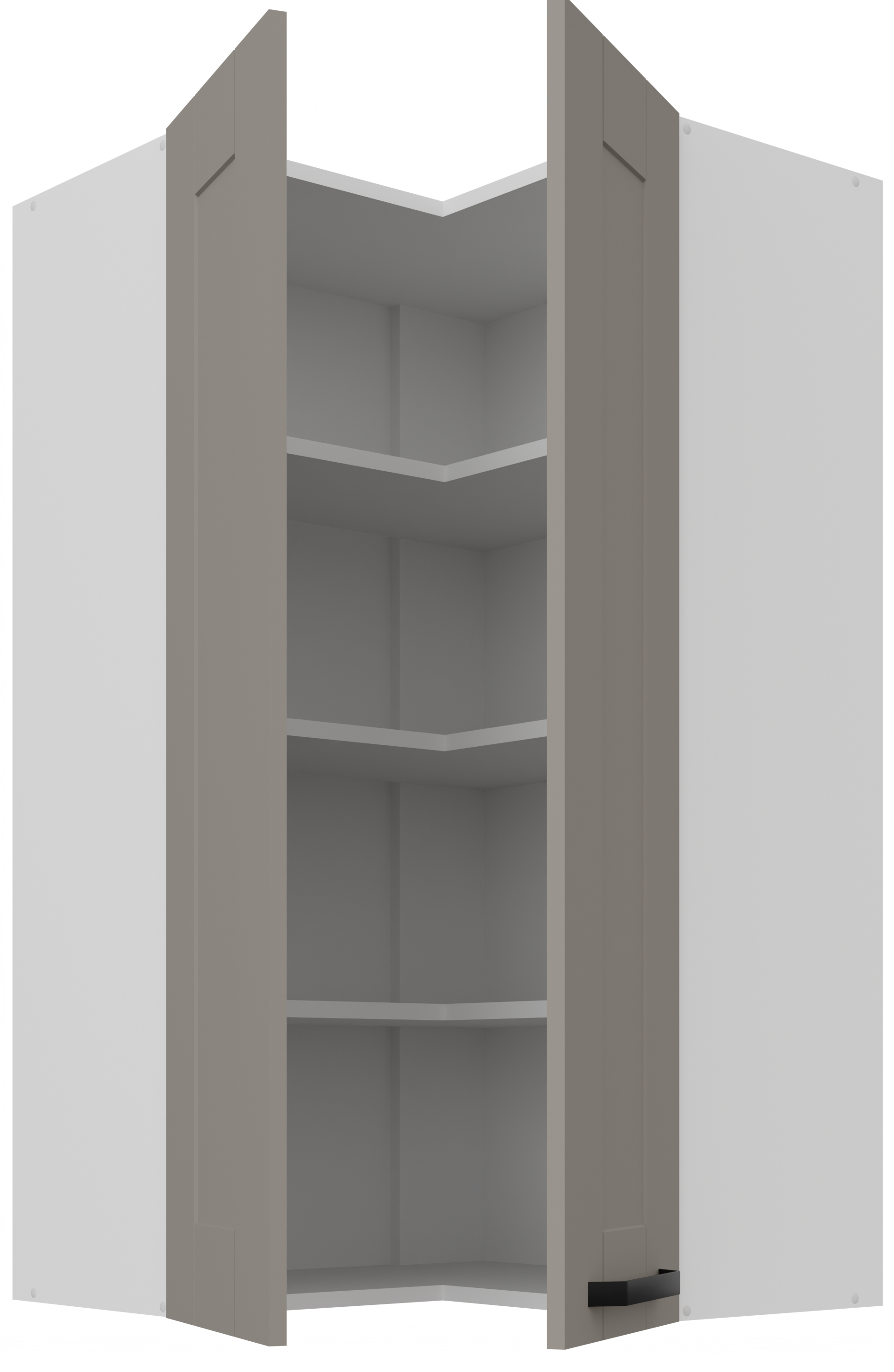 Gornji kutni ormarić Luna u kombinaciji boja claygrey i bijela predstavlja savršenu ravnotežu između funkcionalnosti, estetike i kvalitete. Svojim promišljenim dizajnom dimenzija 60x31x107.5 cm idealno se uklapa u svaki moderan kuhinjski prostor, gdje je svaki centimetar dragocjen. Ormarić je izrađen od kvalitetne laminirane ploče, što osigurava dug životni vijek, jednostavno održavanje i iznimnu otpornost na svakodnevnu upotrebu. Njegova kombinacija boja – smirena siva u nijansi claygrey i svježa bijela – stvara osjećaj čistoće, urednosti i modernosti. Luna je dizajnirana tako da se bez poteškoća uklapa s različitim stilovima unutarnjeg uređenja, od minimalističkog do skandinavskog ili klasičnog.