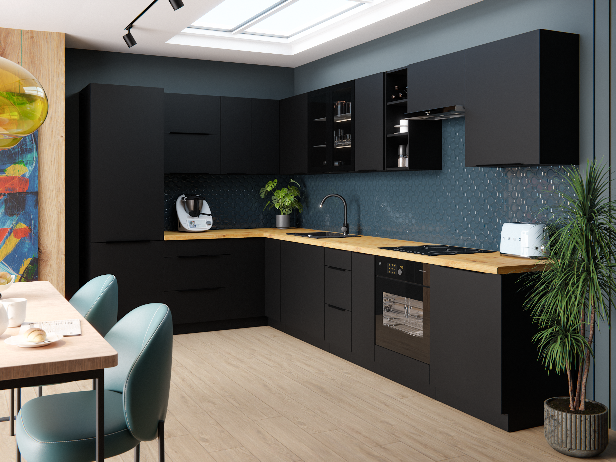 Bez obzira na to obnavljate li cijelu kuhinju ili samo dodajete nove elemente, gornji kutni ormarić Siena pravi je odabir za sve koji cijene kvalitetu, funkcionalnost i profinjen dizajn. Njegova univerzalna crna boja lijepo se slaže s drvenim dekorima, svijetlim frontama ili metalnim dodacima, pa omogućuje brojne kombinacije i prilagodbe vašem stilu.