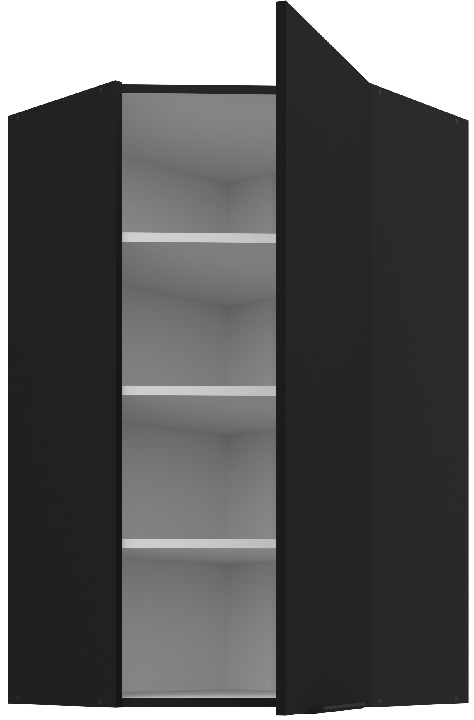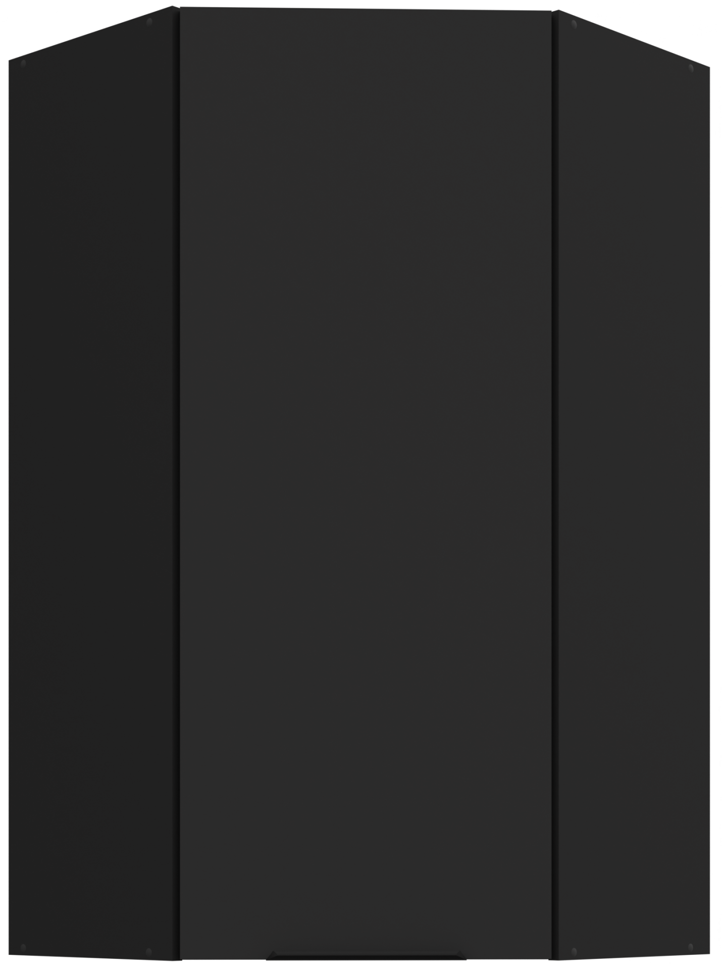 Gornji kutni ormarić Siena – 60x60 GN-108 1F (45°) savršen je odabir za one koji žele iskoristiti svaki kutak svoje kuhinje, a da pri tome ne žrtvuju estetiku ili kvalitetu. Svojim modernim izgledom u crnoj mat boji donosi dojam profinjenosti koji se lijepo uklapa i u moderne i u klasične kuhinjske ambijente. Ormarić je izrađen od kvalitetne laminirane ploče debljine 16 mm, što osigurava dug vijek trajanja i izvrsnu stabilnost konstrukcije.