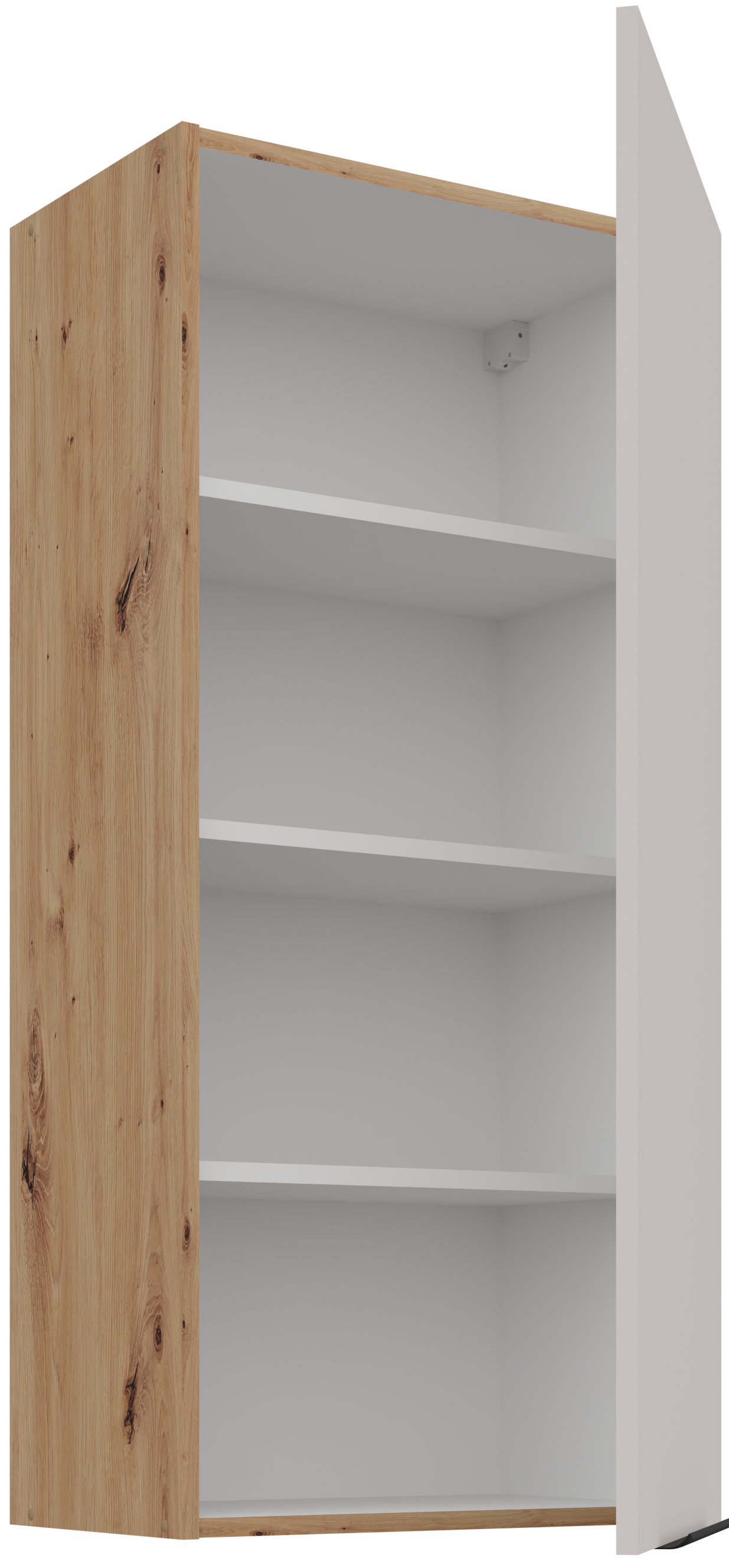 Kuhinjski set Solea odlikuje se visokokvalitetnim materijalima i promišljenom shemom boja. Okvir od laminirane ploče debljine 16 mm osigurava izdržljivost i dugotrajnu upotrebu, dok boja korpusa u nijansi artisan hrasta dodaje dašak prirodne topline. Fronta u elegantnom kašmiru pruža sofisticiran izgled koji se savršeno uklapa s modernim ili klasičnim dekorativnim elementima vašeg doma.