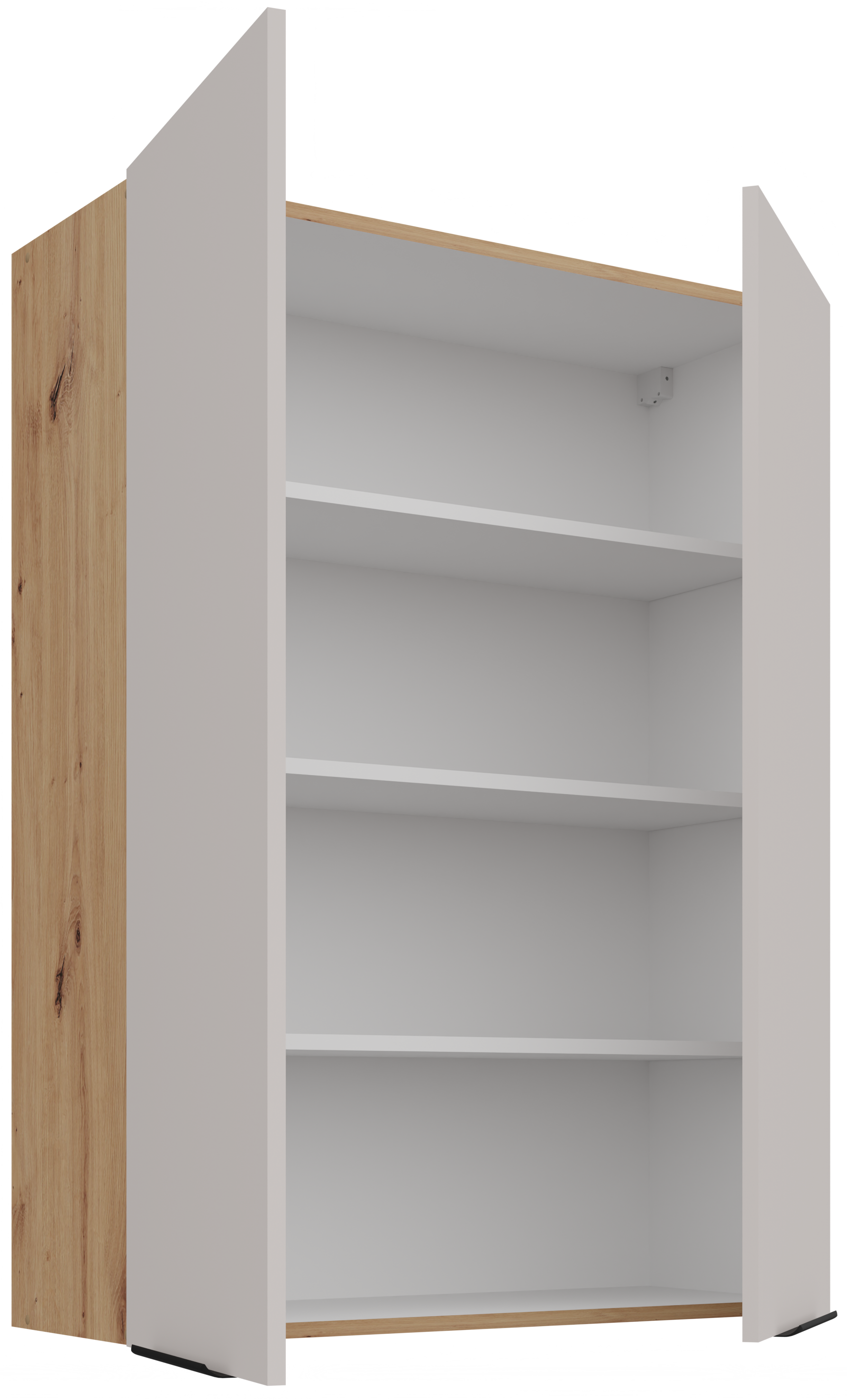 Kuhinjski sastav Solea ponosi se visokokvalitetnim materijalima i promišljenom shemom boja. Okvir od laminirane ploče debljine 16 mm osigurava izdržljivost i dugotrajnu upotrebu, dok boja korpusa u nijansi artisan hrasta dodaje dašak prirodne topline. Fronte u elegantnom kašmiru osiguravaju sofisticiran izgled koji se odlično uklapa s modernim ili klasičnim dekorativnim elementima vašeg doma.