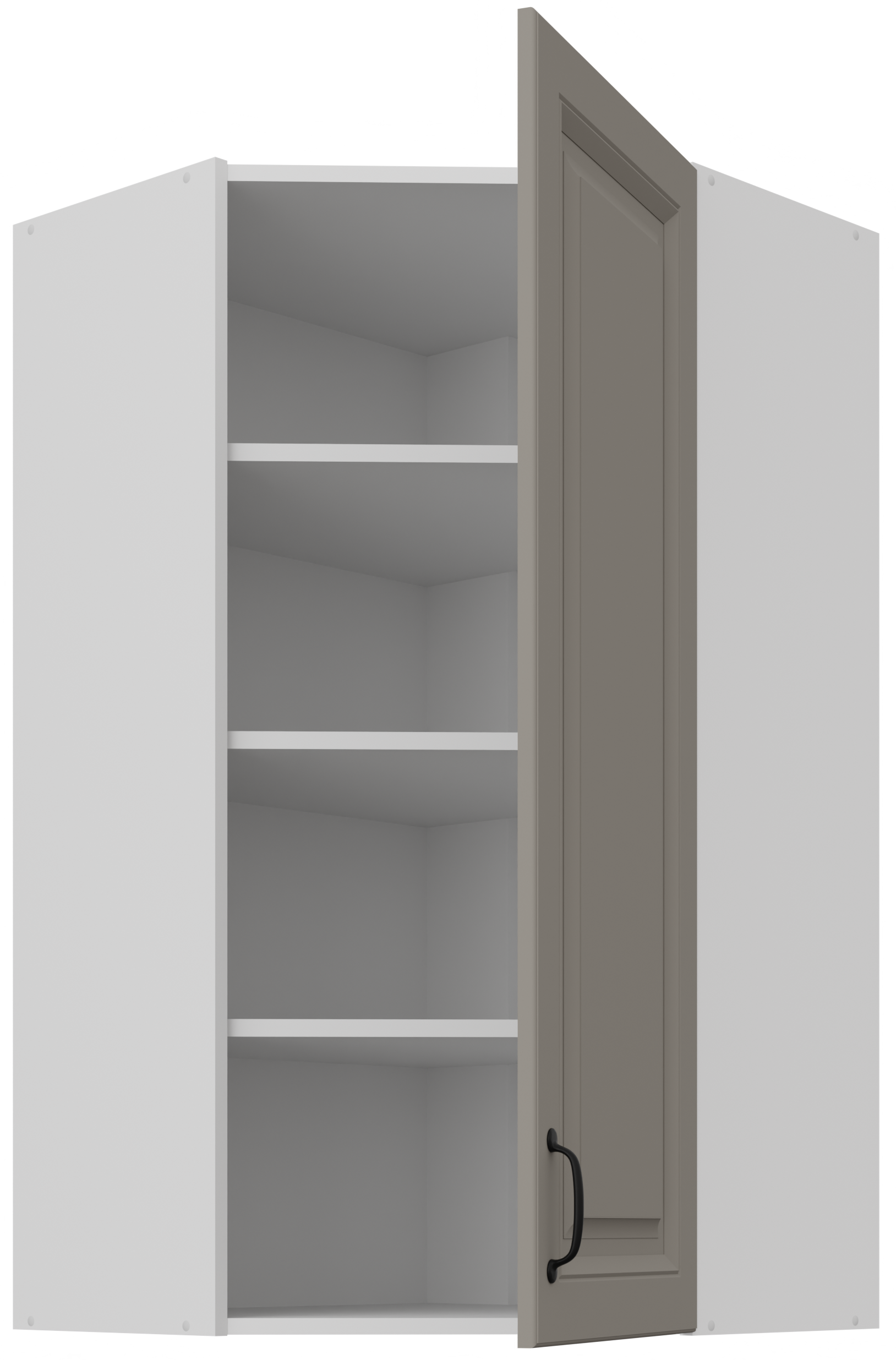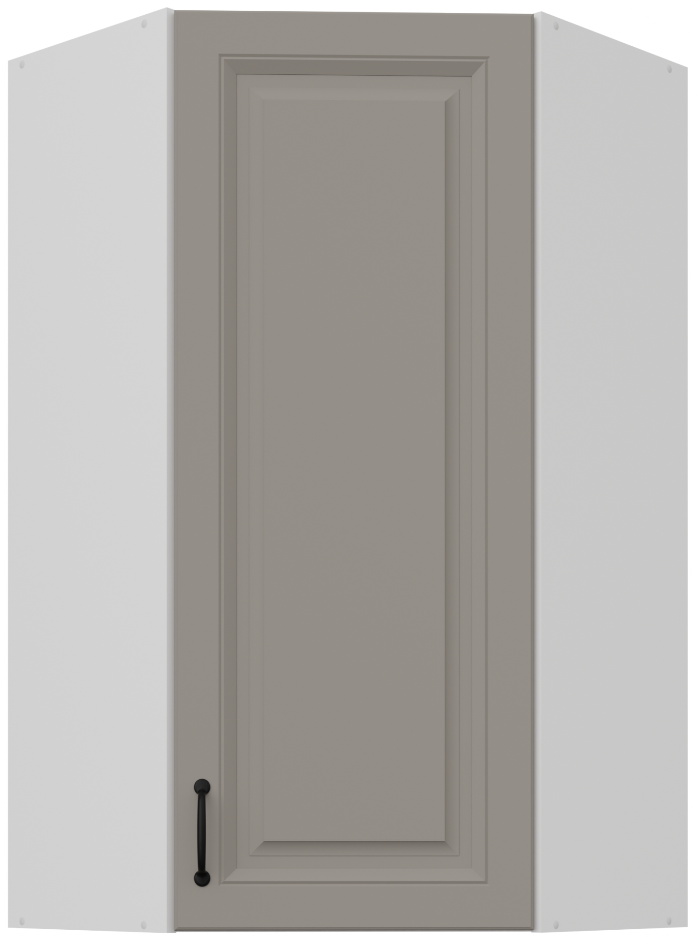 Elegantno i funkcionalno rješenje za suvremene kuhinje – gornji kutni ormarić Stilo u kombinaciji boja claygrey/bijela predstavlja savršenu ravnotežu između estetike i uporabnosti. Njegov promišljeni dizajn omogućuje optimalno iskorištavanje prostora, osobito u manjim ili zahtjevno oblikovanim kuhinjama, gdje je svaki centimetar dragocjen. Izrađen je od kvalitetne laminirane ploče, koja osigurava dug vijek trajanja, jednostavno čišćenje i otpornost na vlagu te trošenje.