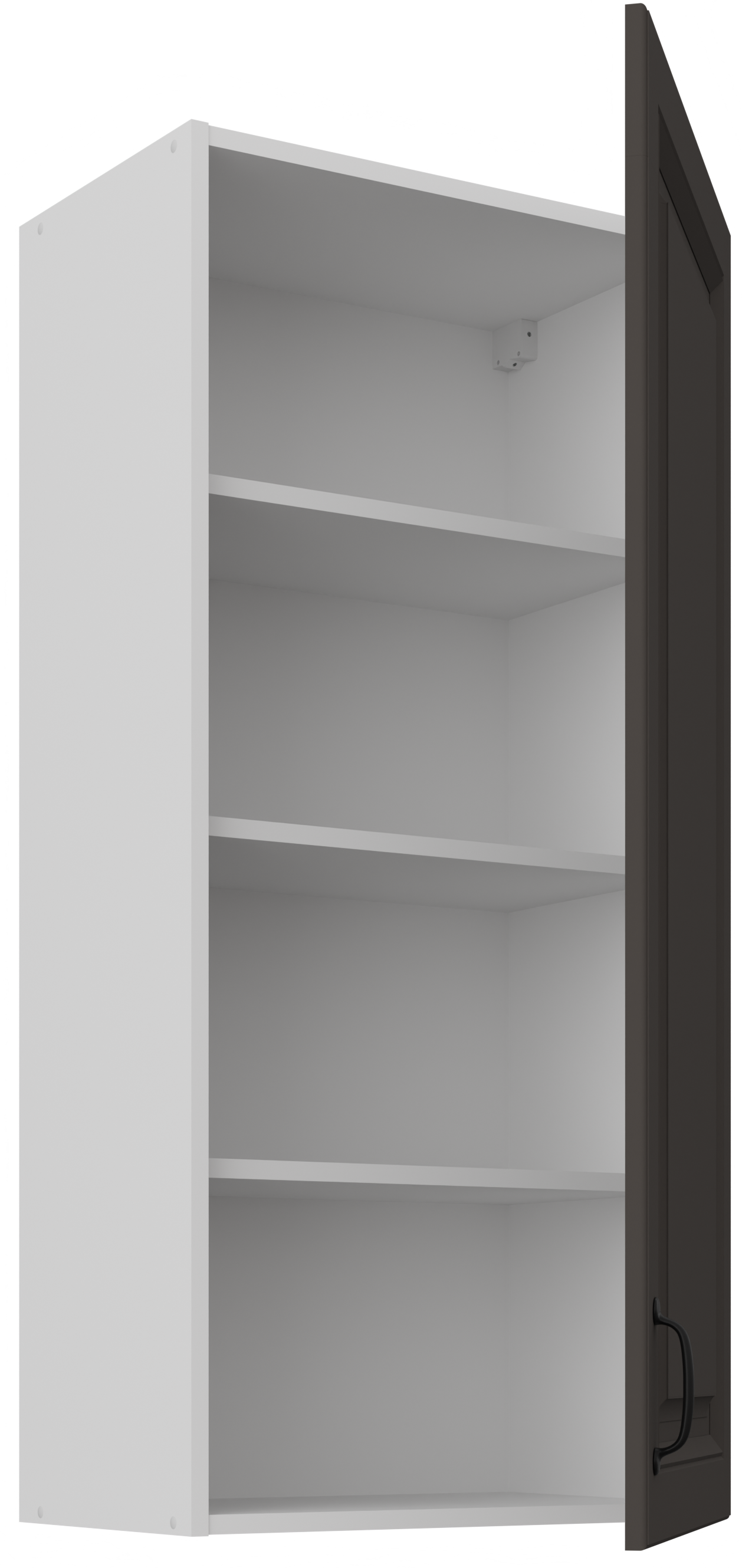 Ormarić je dizajniran tako da omogućuje maksimalno iskorištavanje prostora, a pritom zadržava vizualnu lakoću. To je posebno važno u manjim kuhinjama, gdje svaki detalj ima značaj. Unutrašnjost u bijeloj boji dodatno povećava osjećaj prostranosti i svjetlosti, stvarajući ugodnu atmosferu domaće topline.
