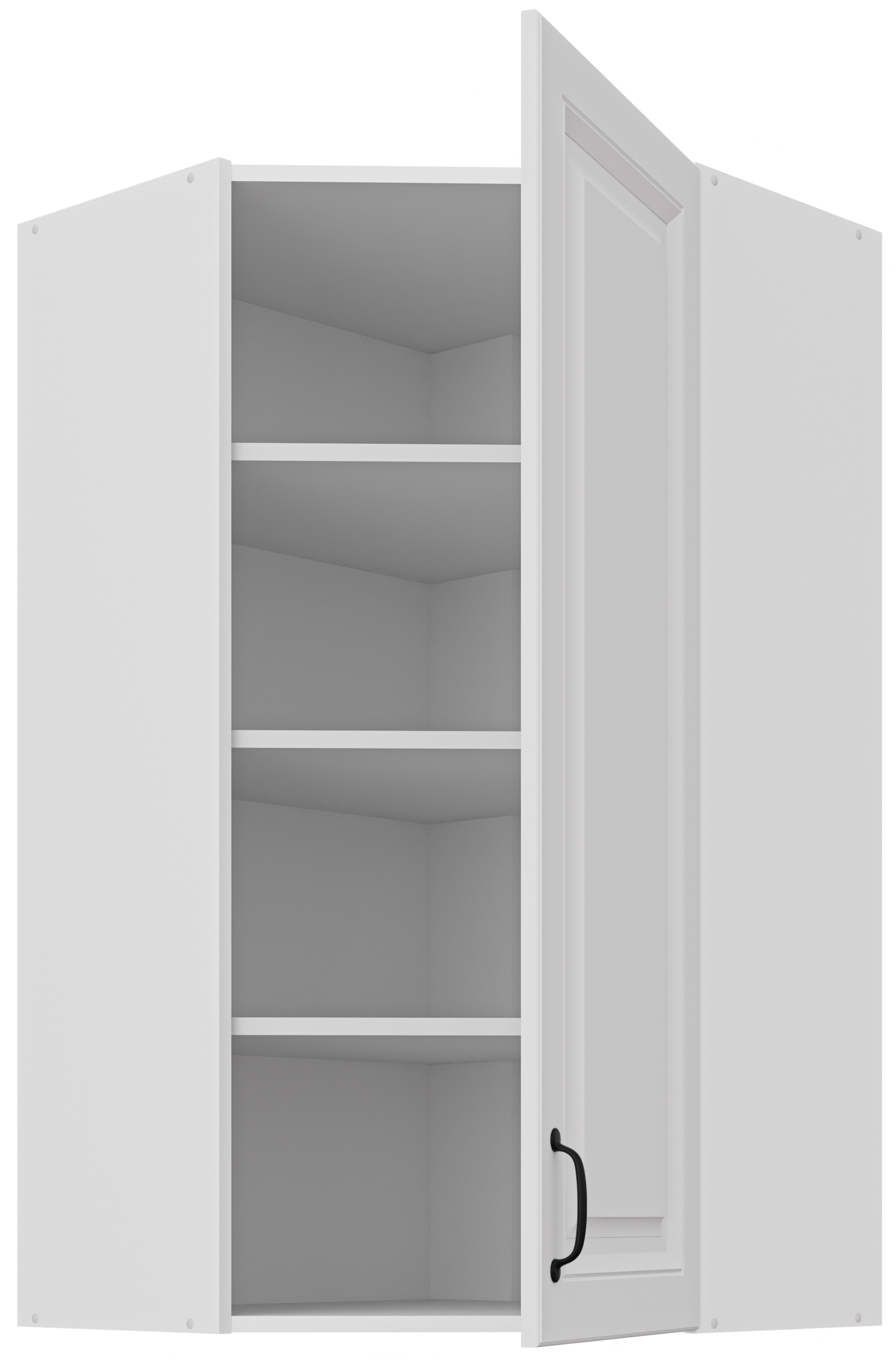 Savršena kombinacija funkcionalnosti, elegancije i modernog dizajna – gornji kutni ormar iz kolekcije Stilo u bezvremenskoj bijeloj boji idealno je rješenje za svaku kuhinju, gdje je važan svaki centimetar prostora. Svojim promišljenim dizajnom i kvalitetnom izradom predstavlja savršen način kako iskoristiti inače neiskorišten kut te stvoriti dodatnu površinu za pohranu, a da pritom ne žrtvujete estetiku ili udobnost upotrebe.