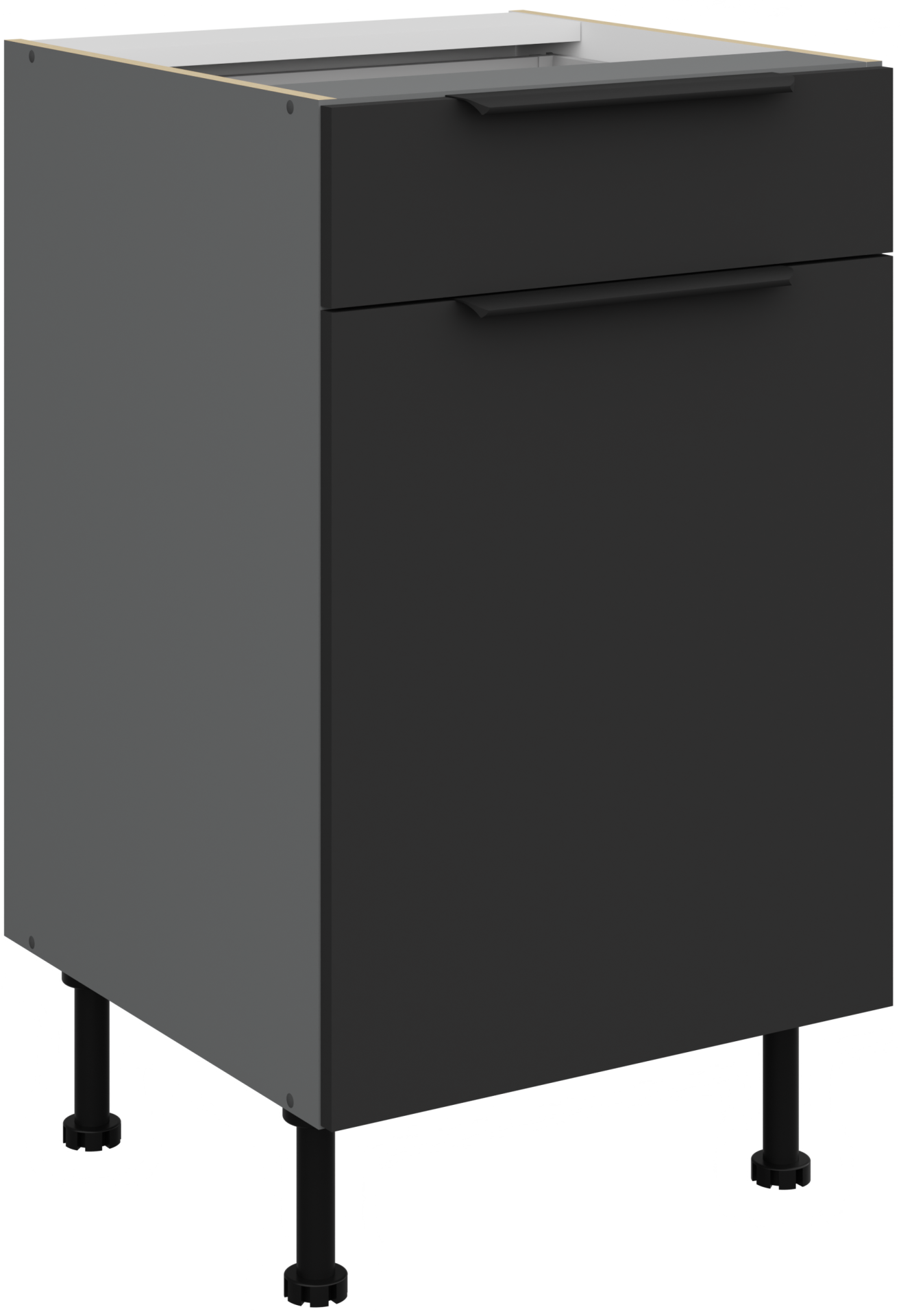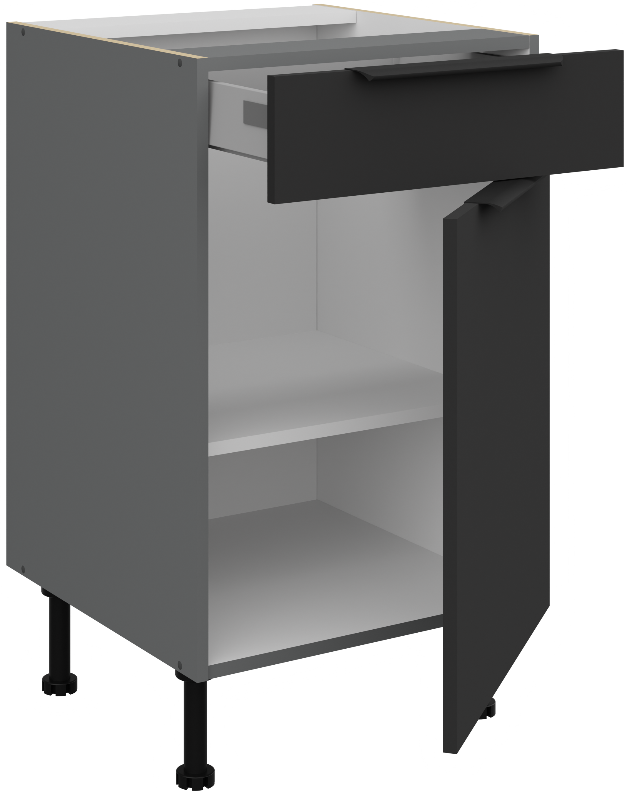 Osnova svakog elementa je laminirana ploča debljine 16 mm, koja osigurava stabilnost i otpornost na svakodnevnu uporabu. Površina je jednostavna za čišćenje i otporna na vlagu, ogrebotine te toplinu – svojstva koja su u kuhinji posebno važna. Crno-antracitni tonovi dodaju dašak prestiža i stvaraju harmoničan kontrast sa svijetlim zidovima ili prirodnim materijalima, poput drva i kamena.