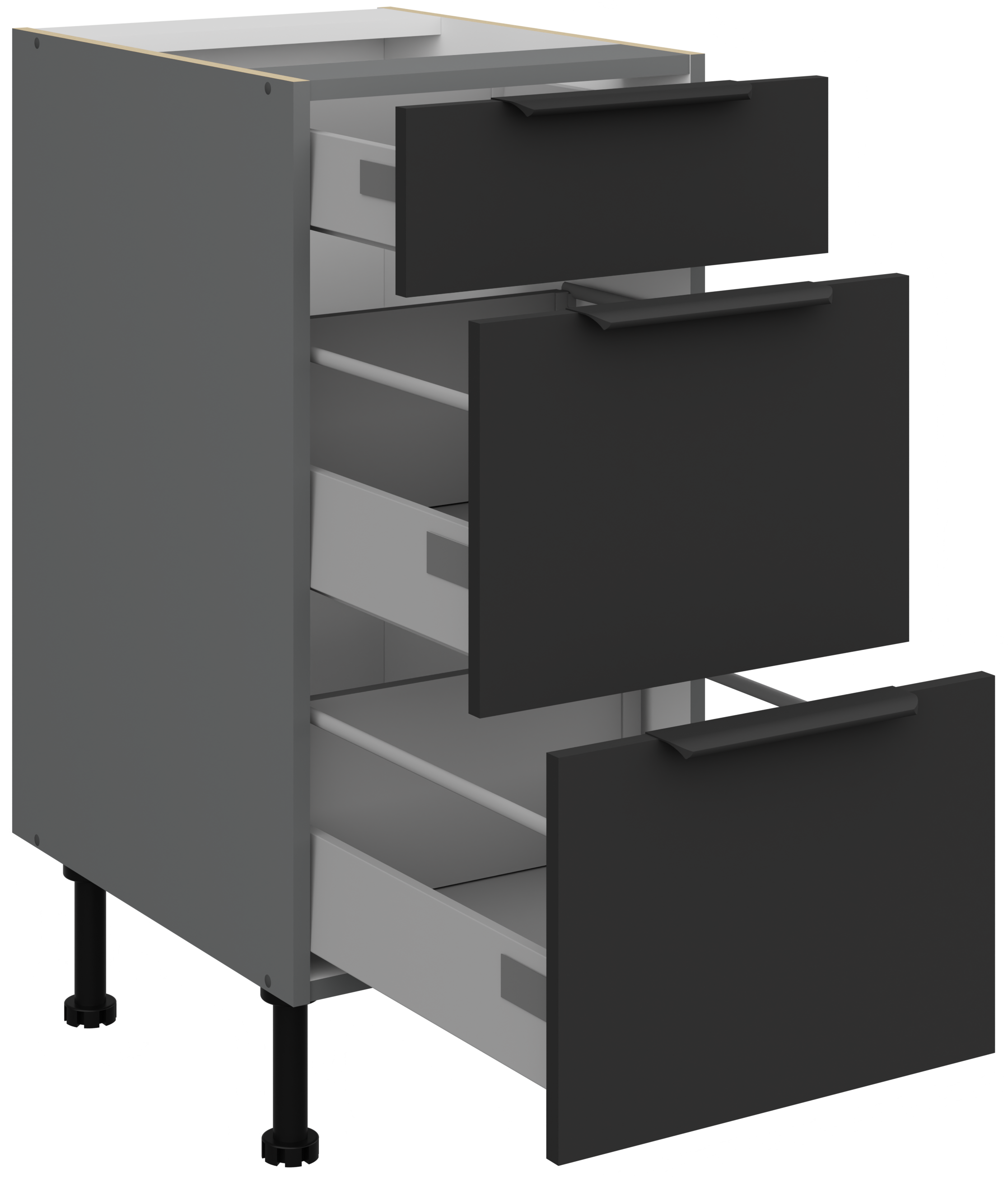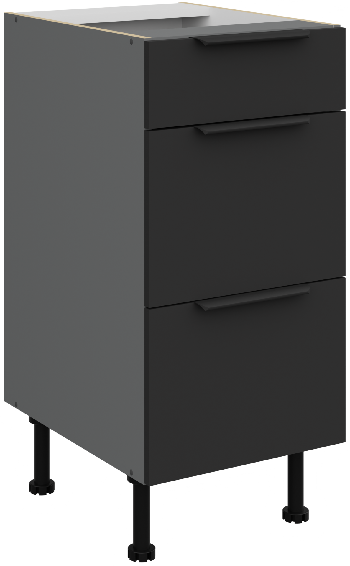 Osnova svakog elementa je laminirana ploča debljine 16 mm, koja osigurava stabilnost i otpornost na svakodnevnu upotrebu. Površina je jednostavna za čišćenje i otporna na vlagu, ogrebotine te toplinu – svojstva koja su u kuhinji posebno važna. Crno-antracitni tonovi dodaju dašak prestiža i stvaraju harmoničan kontrast sa svijetlim zidovima ili prirodnim materijalima poput drva i kamena.