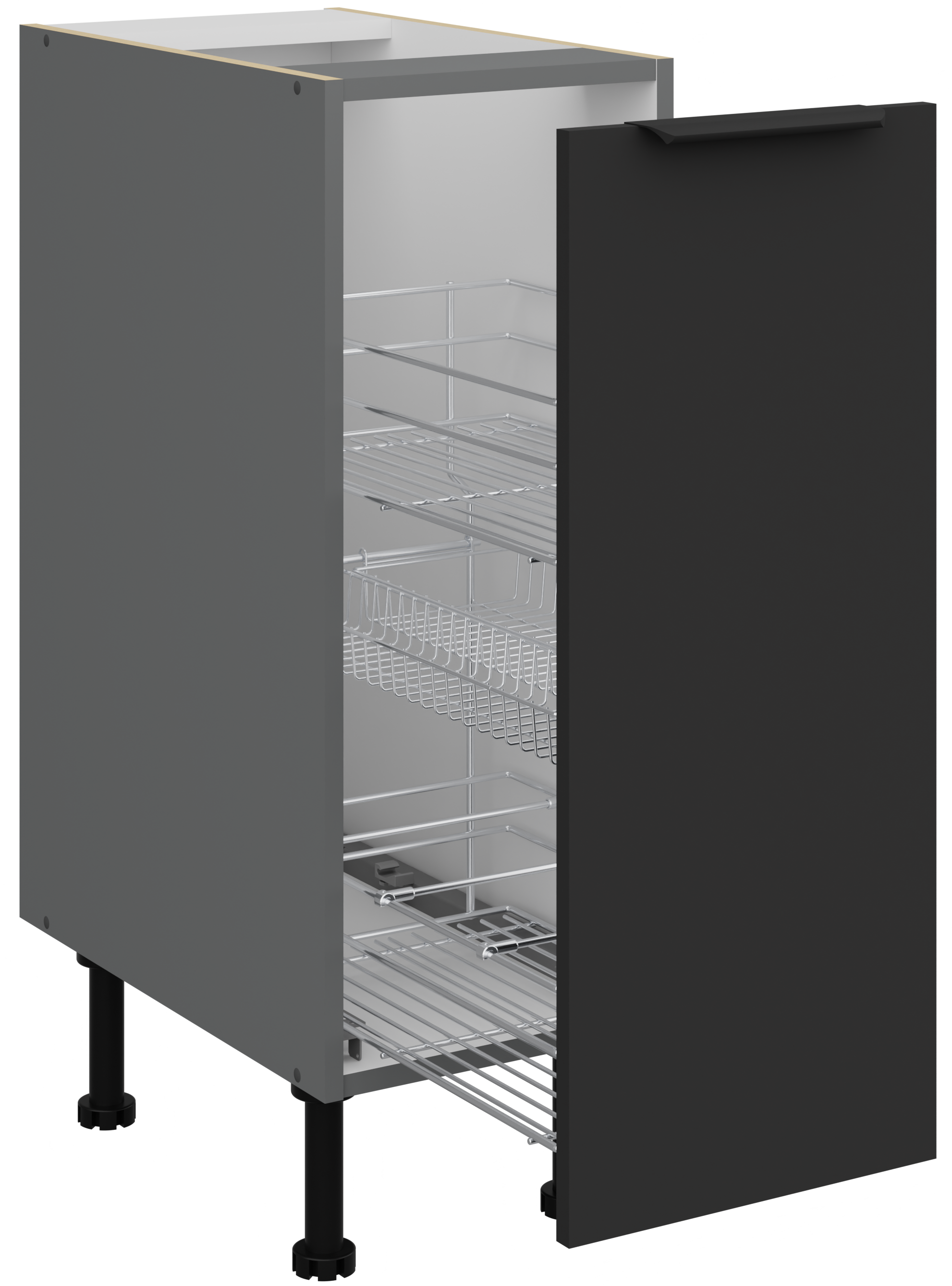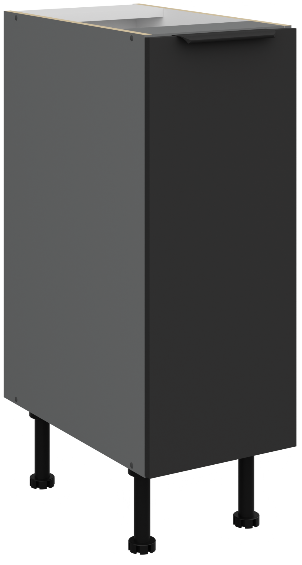 Osnova svakog elementa je laminirana ploča debljine 16 mm, koja osigurava stabilnost i otpornost na svakodnevnu upotrebu. Površina je jednostavna za čišćenje i otporna na vlagu, ogrebotine te toplinu – svojstva koja su u kuhinji posebno važna. Crno-antracitni tonovi dodaju dašak prestiža i stvaraju harmoničan kontrast sa svijetlim zidovima ili prirodnim materijalima, poput drva i kamena.