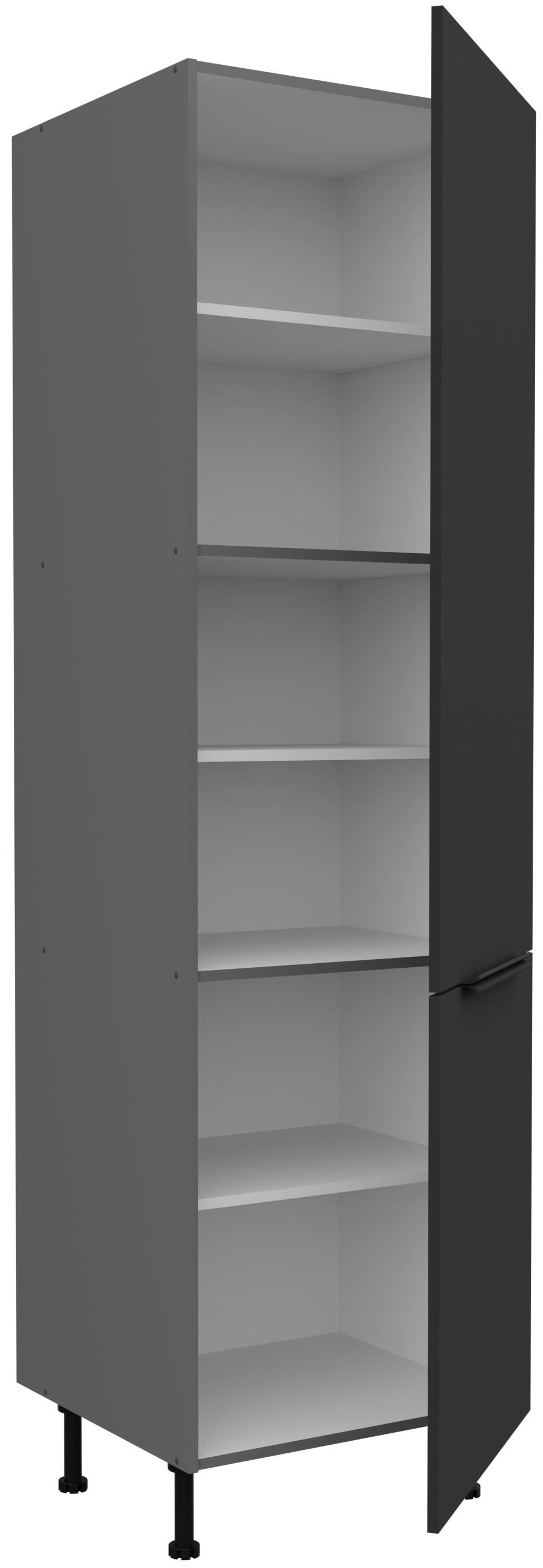 Osnova svakog elementa je laminirana ploča debljine 16 mm, koja osigurava stabilnost i otpornost na svakodnevnu upotrebu. Površina je jednostavna za čišćenje i otporna na vlagu, ogrebotine te toplinu – svojstva koja su u kuhinji posebno važna. Crno-antracitni tonovi dodaju dašak prestiža i stvaraju harmoničan kontrast sa svijetlim zidovima ili prirodnim materijalima, poput drva i kamena.