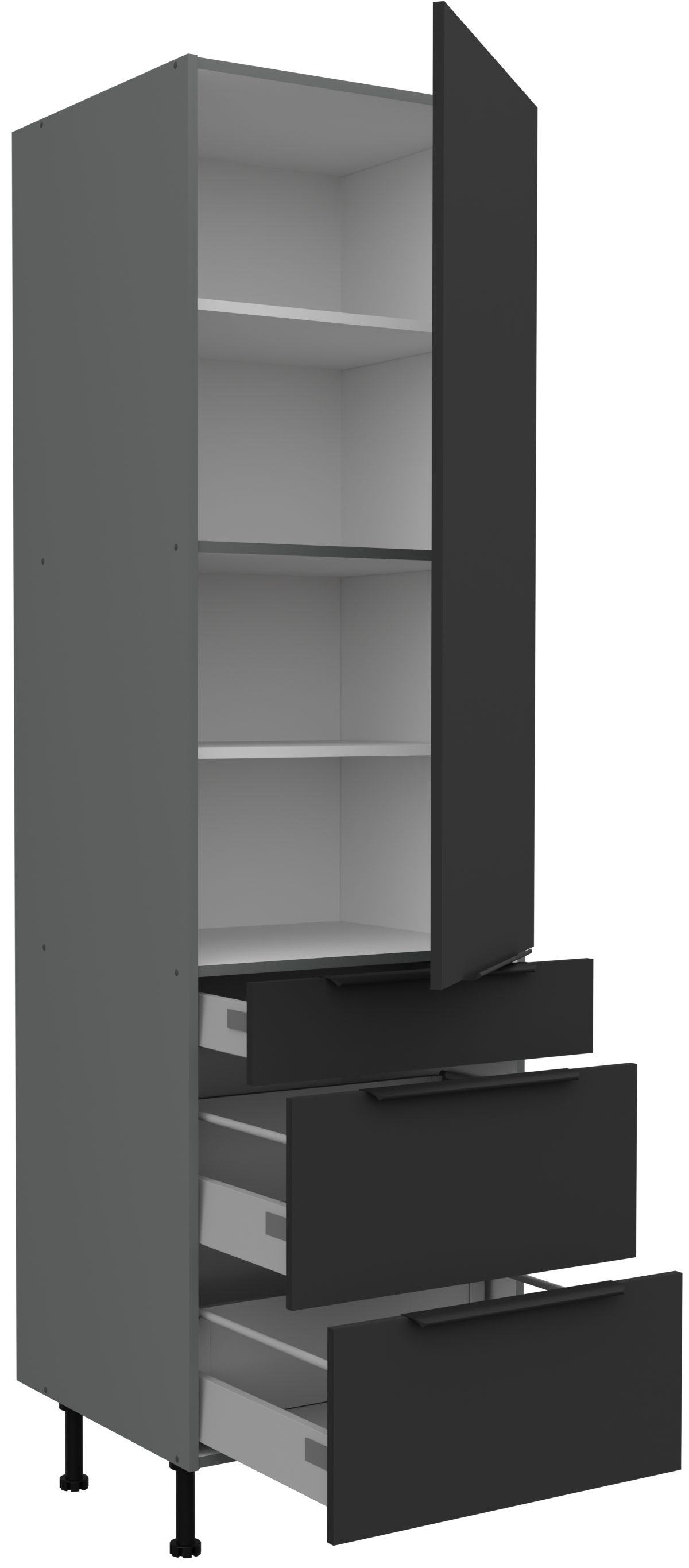 Savršeno ispreplitanje funkcionalnosti, stila i kvalitete – to je kuhinjski sastav koji će vašem domu udahnuti suvremenu eleganciju. Kombinacija crne i antracitne boje stvara raskošan, a istodobno minimalistički izgled, koji se odlično uklapa kako u urbana stanovanja tako i u moderne kuće. Svaki element izrađen je s mišlju na korisnika i na dug vijek trajanja, stoga je ova kuhinja idealan izbor za sve koji žele izdržljiv, estetski dovršen i praktičan kuhinjski prostor.