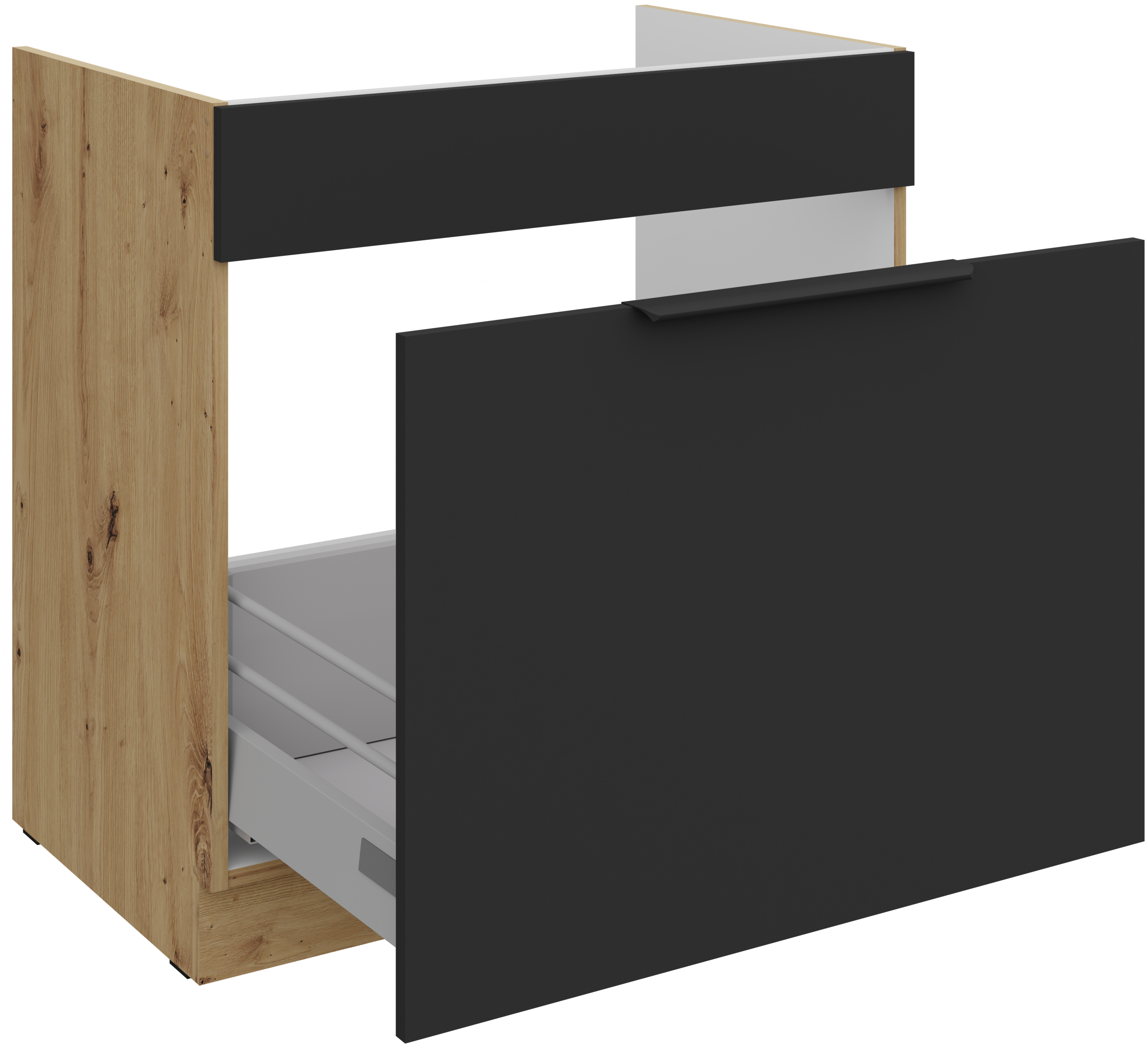 Kada se estetika susretne s praktičnošću, nastaje kuhinjski sastav koji nadmašuje očekivanja suvremenog doma. Kombinacija crne boje i toplog tona artisan hrasta stvara prekrasan kontrast koji prostoru donosi osjećaj prestiža i udobnosti istovremeno. Ova kuhinja je osmišljena za one koji cijene kvalitetu, bezvremenski dizajn i žele stvoriti prostor gdje se isprepliću ljepota i učinkovitost.