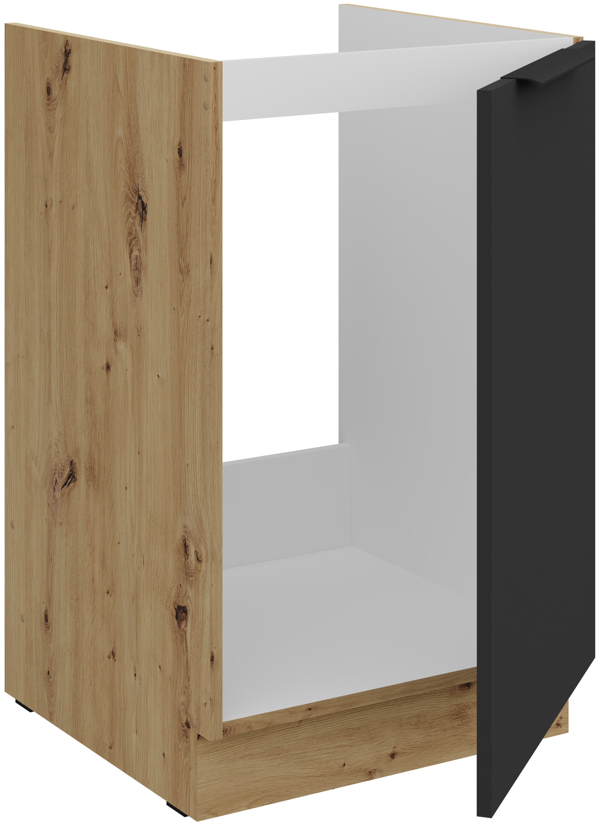 Kada se estetika susretne s praktičnošću, nastaje kuhinjski sastav koji nadmašuje očekivanja suvremenog doma. Kombinacija crne boje i toplog tona artisan hrasta stvara prekrasan kontrast koji u prostor unosi osjećaj prestiža i udobnosti u isto vrijeme. Ova kuhinja je osmišljena za one koji cijene kvalitetu, bezvremenski dizajn i žele stvoriti prostor gdje se isprepliću ljepota i učinkovitost.