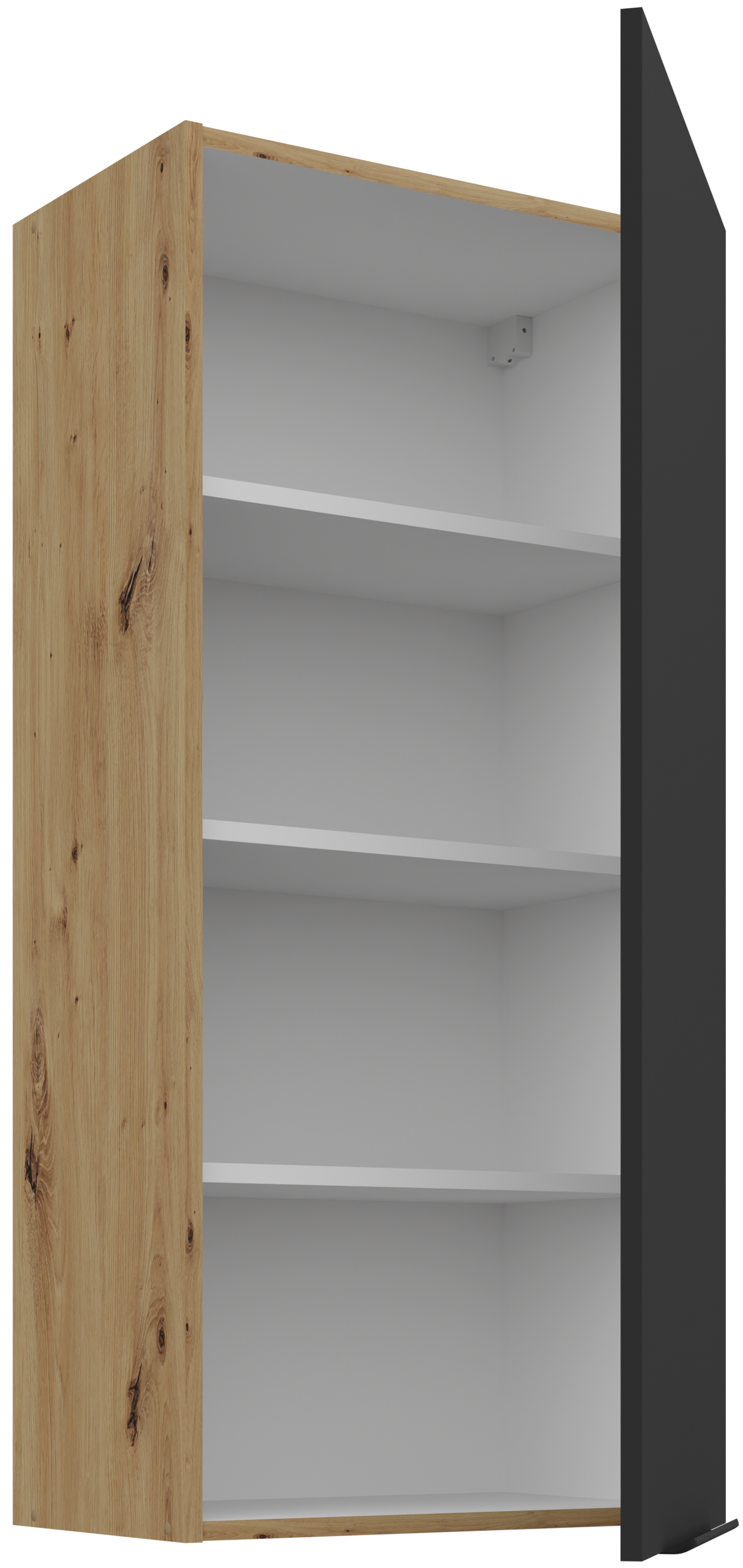 Kada se estetika susretne s praktičnošću, nastaje kuhinjski sastav koji nadmašuje očekivanja suvremenog doma. Kombinacija crne boje i toplog nijanse artisan hrasta stvara prekrasan kontrast koji prostoru unosi osjećaj prestiža i udobnosti istovremeno. Ova kuhinja osmišljena je za one koji cijene kvalitetu, bezvremenski dizajn i žele stvoriti prostor gdje se isprepliću ljepota i učinkovitost.