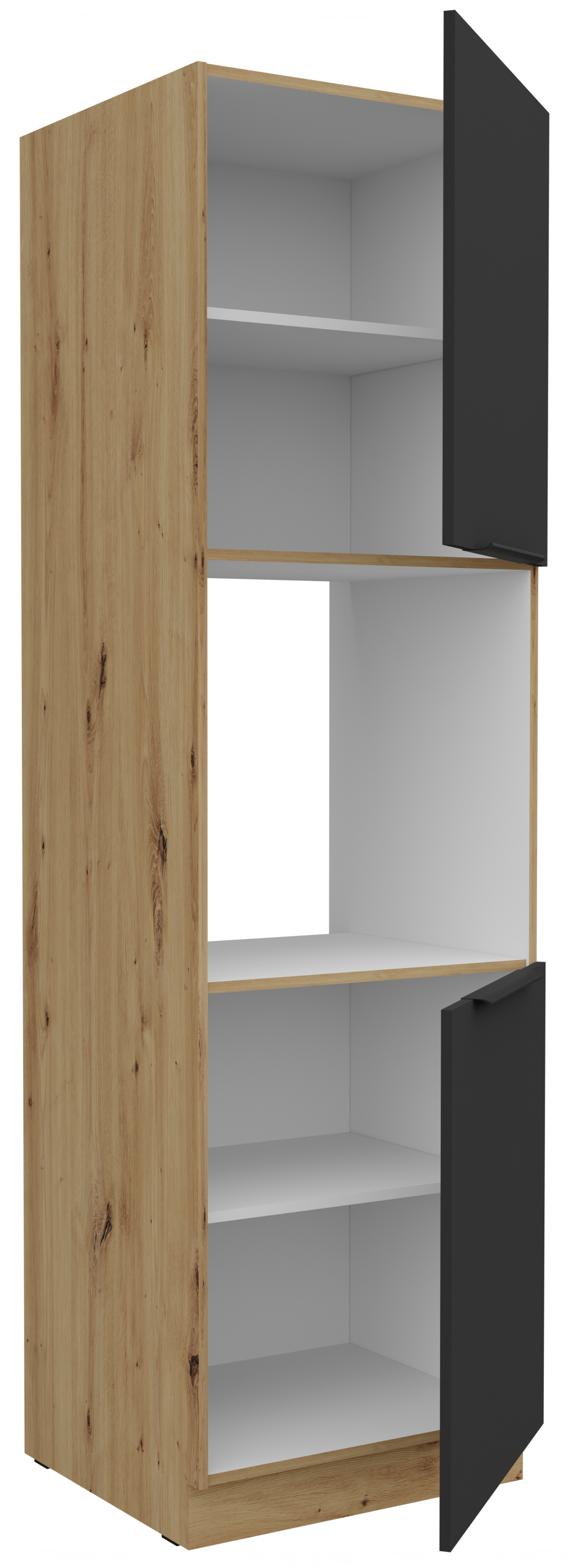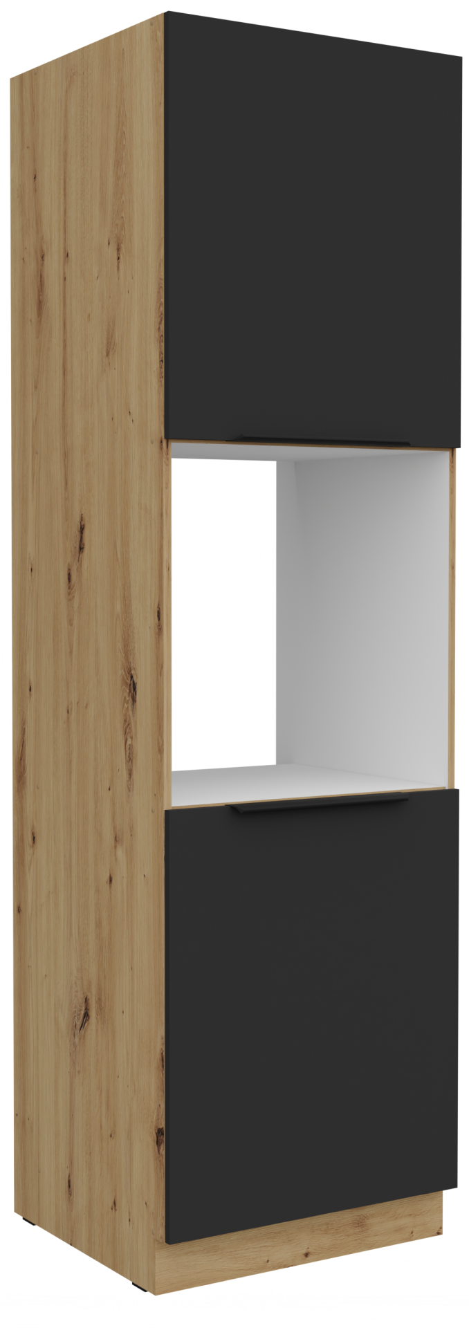 Kada se estetika susretne s praktičnošću, nastaje kuhinjski sastav koji nadmašuje očekivanja suvremenog doma. Kombinacija crne boje i toplog tona artisan hrasta stvara prekrasan kontrast koji prostoru unosi osjećaj prestiža i udobnosti istovremeno. Ova kuhinja dizajnirana je za one koji cijene kvalitetu, bezvremenski dizajn i žele stvoriti prostor gdje se isprepliću ljepota i učinkovitost.