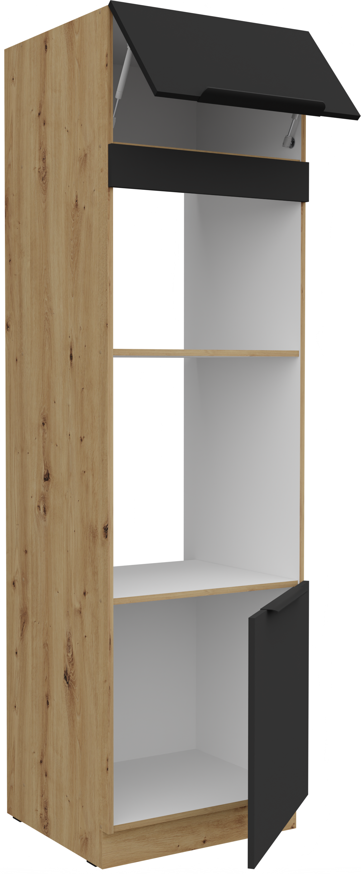 Kada se estetika susretne s praktičnošću, nastaje kuhinjski sastav koji nadmašuje očekivanja suvremenog doma. Kombinacija crne boje i toplog tona artisan hrasta stvara prekrasan kontrast koji prostoru unosi osjećaj prestiža i udobnosti istovremeno. Ova kuhinja je osmišljena za one koji cijene kvalitetu, bezvremenski dizajn i žele stvoriti prostor u kojem se isprepliću ljepota i učinkovitost.