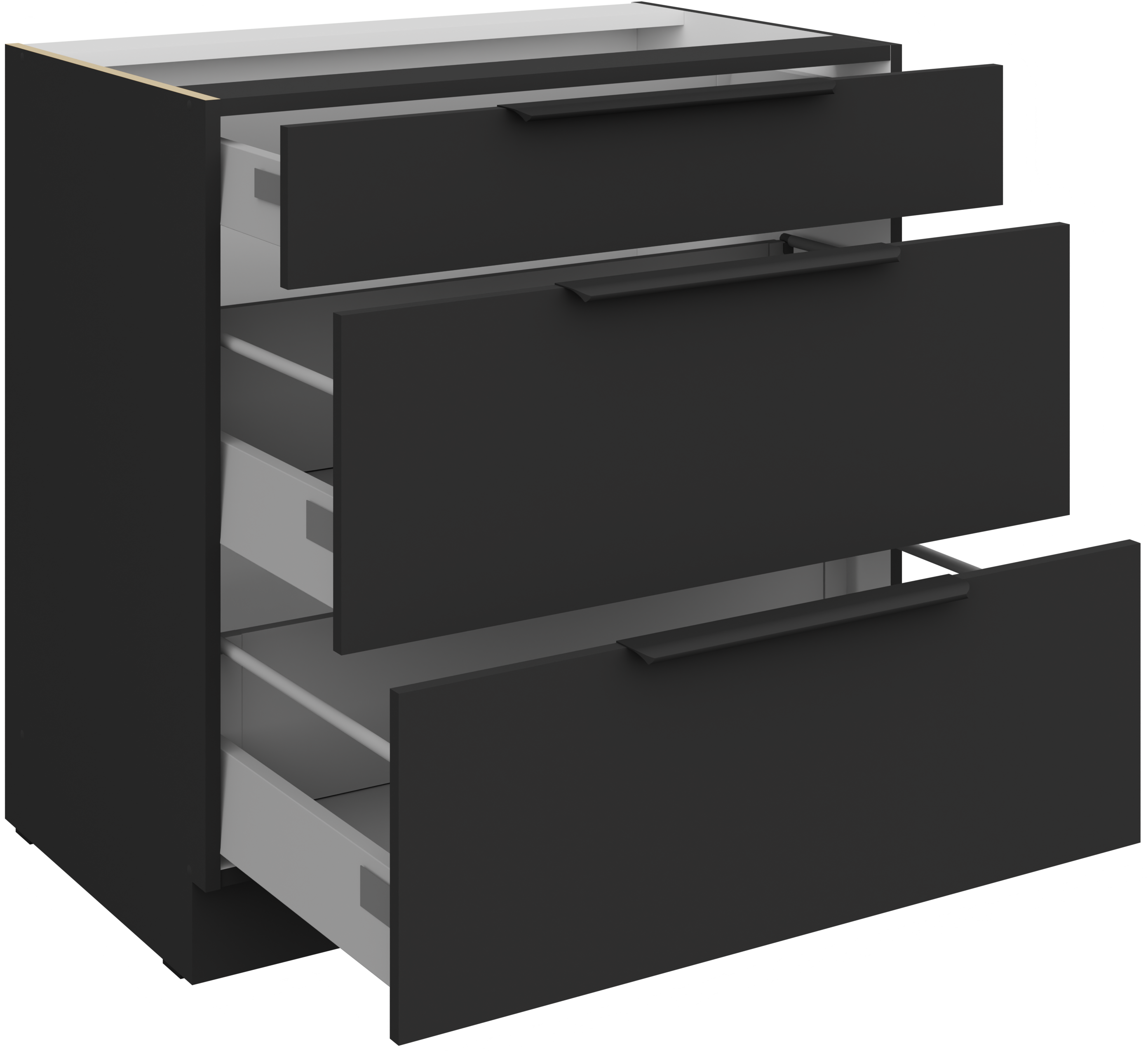 Ovaj kuhinjski set savršeno se uklapa u različite tipove prostora – od manjih stanova do većih obiteljskih kuhinja. Zbog svoje neutralne crne boje lijepo se kombinira s prirodnim materijalima poput drva, betona ili metala, što omogućuje brojne mogućnosti oblikovanja. Bez obzira na to preferirate li minimalizam ili industrijski stil, ova će kuhinja upotpuniti vaš ambijent stilom i karakterom. Osim estetske dovršenosti, nudi i praktičan dizajn. Strateški raspoređeni elementi omogućuju optimalno iskorištavanje prostora, što olakšava pripremu hrane i održava red. Ladice i ormarići nude dovoljno prostora za pohranu posuđa, pribora i zaliha, pa će vaša kuhinja uvijek biti organizirana i uredna.