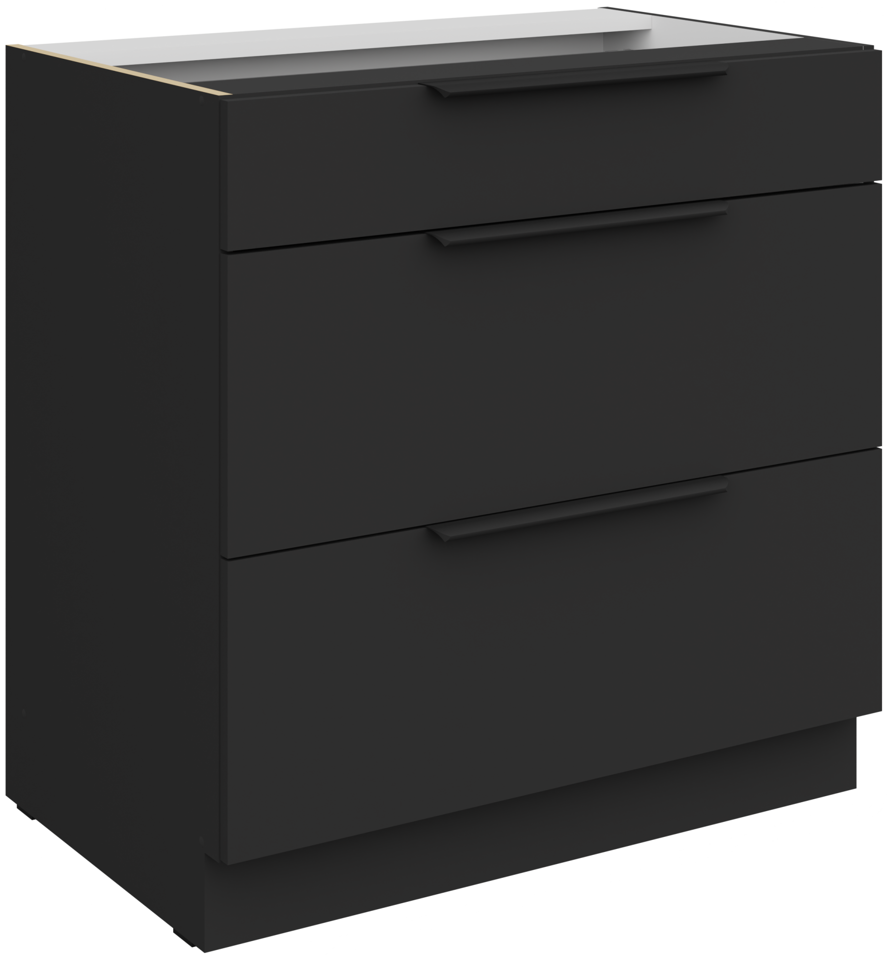 Svaka suvremena kuhinja je srce doma – prostor gdje se susreću obitelj, prijatelji i ukusne ideje. Ovaj kuhinjski set u profinjenoj crnoj boji savršen je izbor za sve koji cijene suvremenu estetiku, kvalitetne materijale i promišljen dizajn. Preciznom izradom od 16 mm laminirane ploče osigurava dug vijek trajanja, a istovremeno zadržava elegantan izgled koji se lako uklapa u različite unutarnje stilove. Dizajn kuhinje temelji se na minimalističkoj liniji i bezvremenskoj kombinaciji boja. Crna boja korpusa i fronti naglašava moderan karakter prostora, dok crno-aluminijski ručkice Edge UA-HEXA dodaju dašak profinjenosti. Sve zajedno čini harmoničnu cjelinu koja odiše elegancijom i profinjenim ukusom.