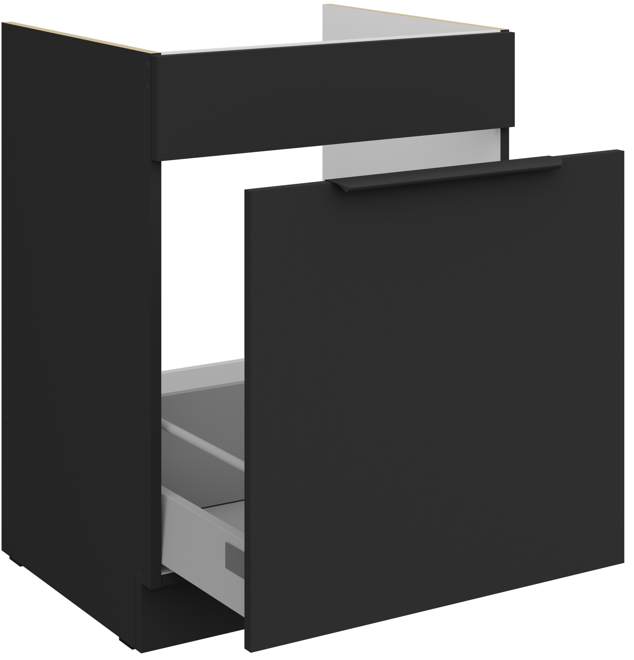 Svaka moderna kuhinja je srce doma – prostor gdje se susreću obitelj, prijatelji i ukusne ideje. Ovaj kuhinjski set u profinjenoj crnoj boji savršen je odabir za sve koji cijene suvremenu estetiku, kvalitetne materijale i promišljen dizajn. Preciznom izradom od 16 mm laminirane ploče osigurava dug životni vijek, a pritom zadržava elegantan izgled koji se lako uklapa u različite unutarnje stilove. Dizajn kuhinje temelji se na minimalističkoj liniji i bezvremenskoj kombinaciji boja. Crna boja korpusa i fronti naglašava moderan karakter prostora, dok crno-aluminijski ručkice Edge UA-HEXA dodaju dašak sofisticiranosti. Sve zajedno stvara harmoničnu cjelinu koja odiše elegancijom i profinjenim ukusom.