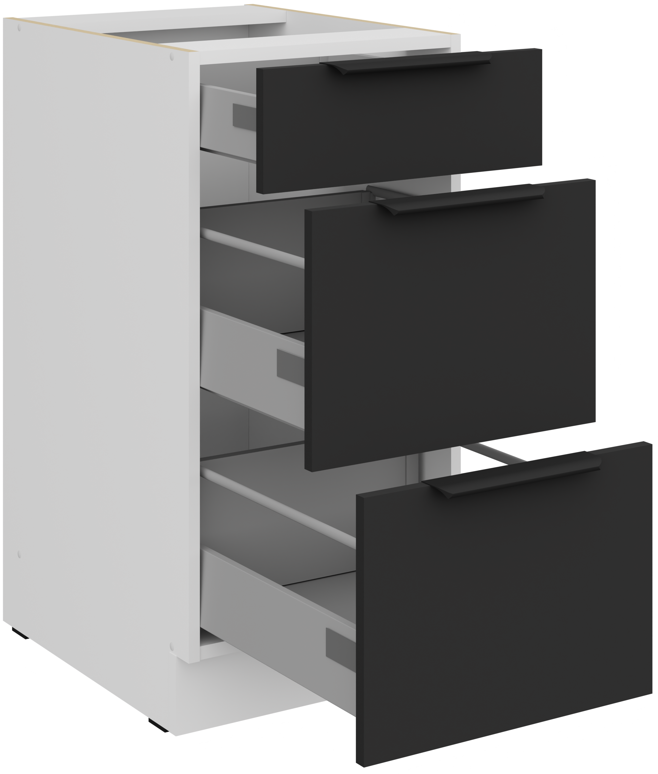 Crna i bijela boja stvaraju bezvremenski kontrast koji se savršeno uklapa u moderne i klasične interijere. Kućište i fronte od laminirane ploče debljine 16 mm osiguravaju dug vijek trajanja i jednostavno održavanje, dok crno-aluminijski ručkice Edge UA-HEXA dodaju dašak suvremene elegancije. Zbog svoje univerzalne kombinacije boja, kuhinjski set Aria lijepo se slaže s različitim vrstama podnih obloga, zidova i dodataka – od drvenih tonova do betonskih površina.