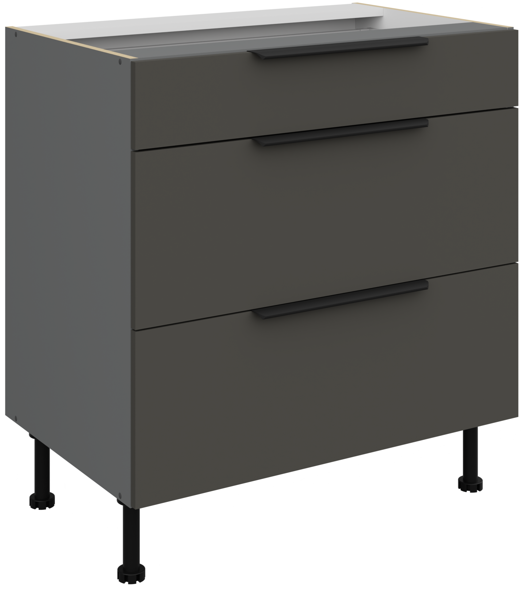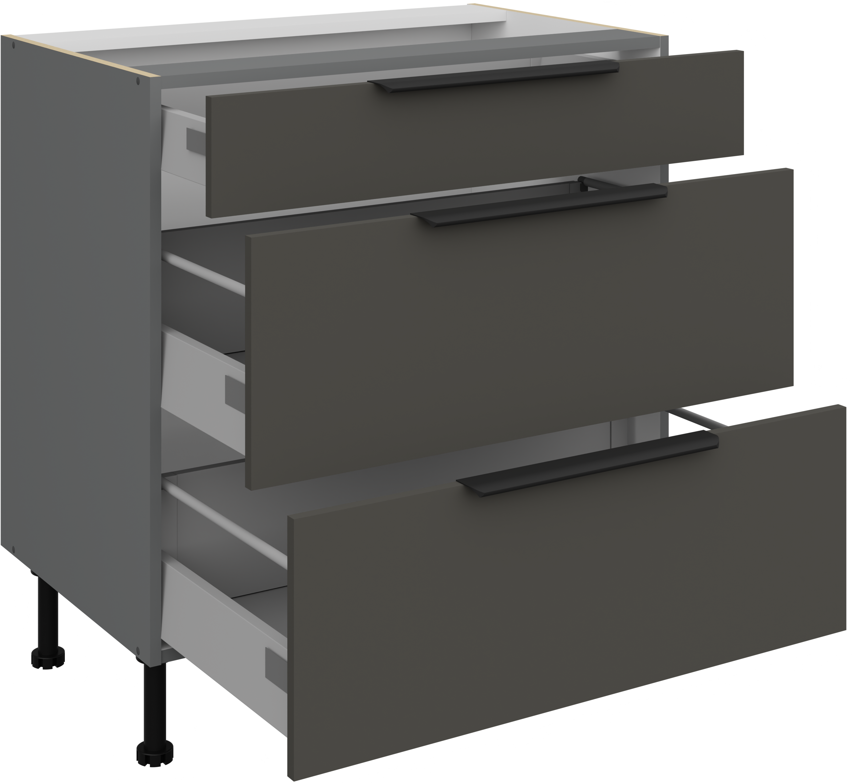 Svaki element kuhinjskog seta promišljeno je oblikovan kako bi ponudio najveću udobnost i uporabnost. Kućište i fronte od laminirane ploče debljine 16 mm osiguravaju izvrsnu čvrstoću te otpornost na vlagu i trošenje – što znači da će vaša kuhinja dugo zadržati svoj izvorni izgled. Crno-aluminijski ručkice Edge UA-HEXA s razmakom između 64 mm i 320 mm dodaju moderan metalni dojam i omogućuju udobno otvaranje vrata i ladica. Njihov elegantan oblik savršeno se uklapa s kontrastom između sivih i antracitnih površina te naglašava suvremeni karakter cijelog prostora.