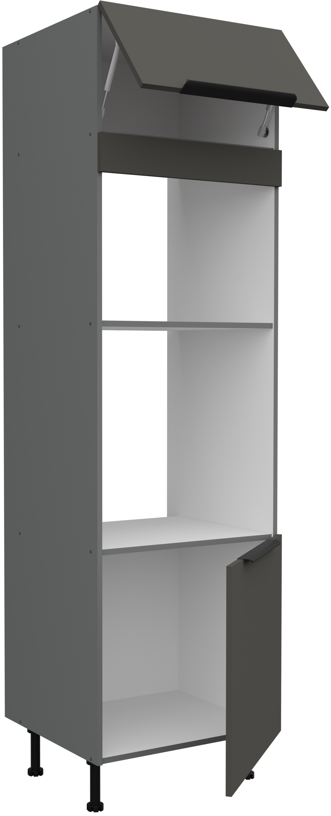 Svaki element kuhinjskog sastava promišljeno je oblikovan kako bi ponudio najviše udobnosti i uporabnosti. Kućište i fronte od laminirane ploče debljine 16 mm osiguravaju izvrsnu čvrstoću te otpornost na vlagu i habanje – što znači da će vaša kuhinja dugo zadržati svoj izvorni izgled. Crno-aluminijski ručkice Edge UA-HEXA s razmakom između 64 mm i 320 mm dodaju moderan metalni dojam i omogućuju ugodno otvaranje vrata i ladica. Njihov elegantan oblik savršeno se uklapa s kontrastom između sivih i antracitnih površina te naglašava suvremeni karakter cijelog prostora.