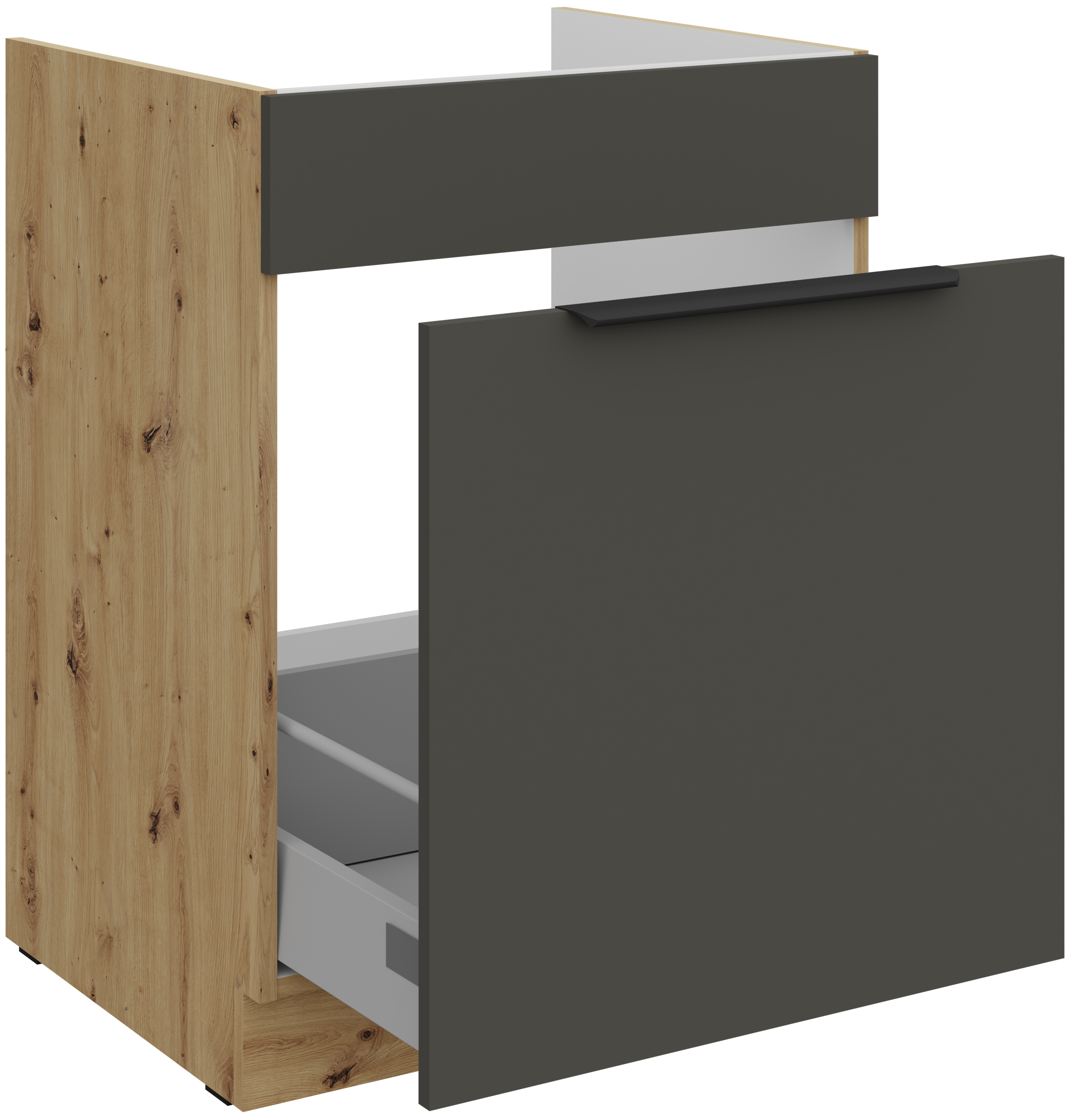 Kuhinjski sastav u kombinaciji sive boje i artisan hrasta predstavlja savršenu ravnotežu između topline prirodnog drva i suvremene minimalističke estetike. Ovaj prekrasno dizajniran kuhinjski komplet namijenjen je svima koji cijene kvalitetu, praktičnost i elegantan izgled prostora. S preciznom izradom od laminirane ploče debljine 16 mm osigurava dug vijek trajanja i otpornost na svakodnevna opterećenja, a pritom zadržava profinjen izgled koji će oduševiti svakog posjetitelja.
