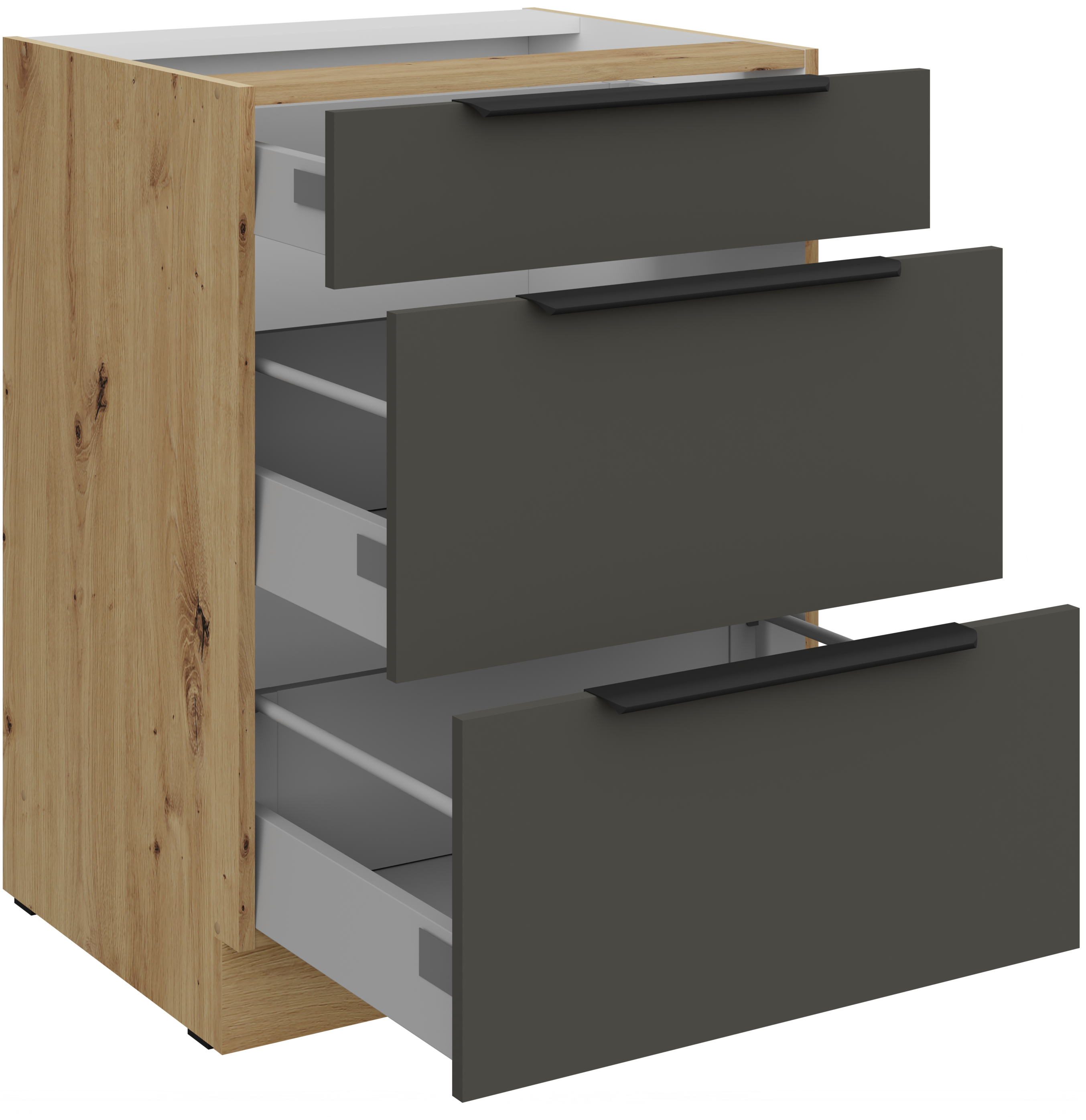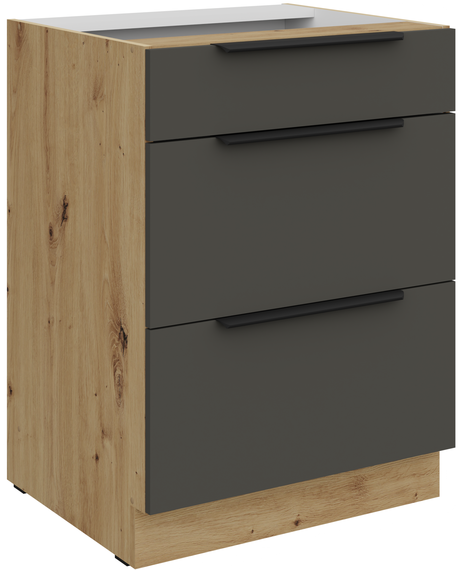 Kuhinjski sastav u kombinaciji sive boje i artisan hrasta predstavlja savršenu ravnotežu između topline prirodnog drva i suvremene minimalističke estetike. Ovaj prekrasno osmišljen kuhinjski komplet namijenjen je svima koji cijene kvalitetu, praktičnost i elegantan izgled prostora. Preciznom izradom od laminirane ploče debljine 16 mm osigurava dug vijek trajanja i otpornost na svakodnevna opterećenja, a istovremeno zadržava profinjen izgled koji će oduševiti svakog posjetitelja.