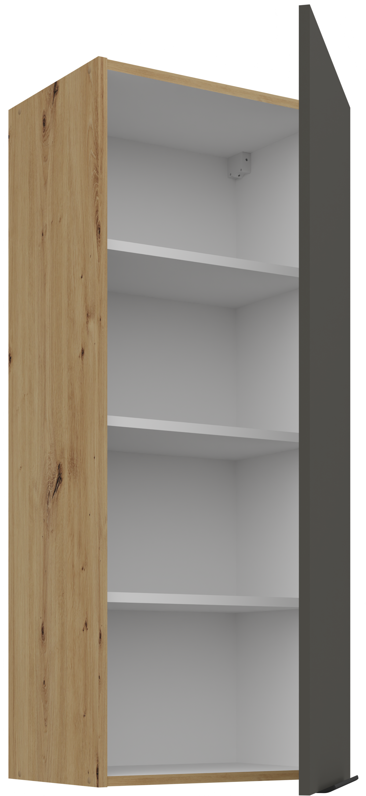 Posebnost ovog kuhinjskog seta je estetska igra kontrasta – meko siva boja prekrasno se nadopunjuje s prirodnom teksturom artisan hrasta, stvarajući ugodnu, domaću atmosferu. Svaka površina pažljivo je obrađena kako bi odražavala osjećaj topline i prestiža, a istovremeno ostaje jednostavna za čišćenje i održavanje. Radna ploča u dekoru mramor roma (38-6499) dodaje dašak luksuza te osigurava čvrstu i elegantnu podlogu za pripremu obroka.