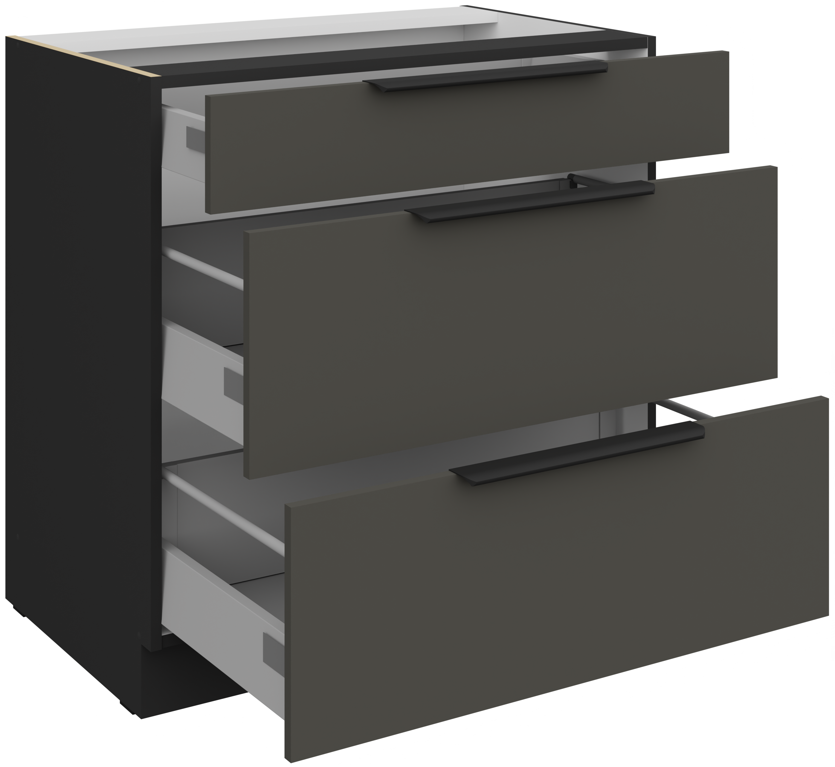 Siva i crna boja stvaraju savršenu ravnotežu između topline i elegancije. Takva kombinacija boja odlično se slaže i sa svjetlijim i s tamnijim podnim oblogama i zidovima, pa će se kuhinjski sastav Aria lako uklopiti u različite stilove interijera – od industrijskog do skandinavskog. Crno-aluminijski ručkice Edge UA-HEXA s čistim linijama dodaju dašak suvremenosti i profinjenosti, a ujedno omogućuju udobno i sigurno otvaranje fronti i ladica.