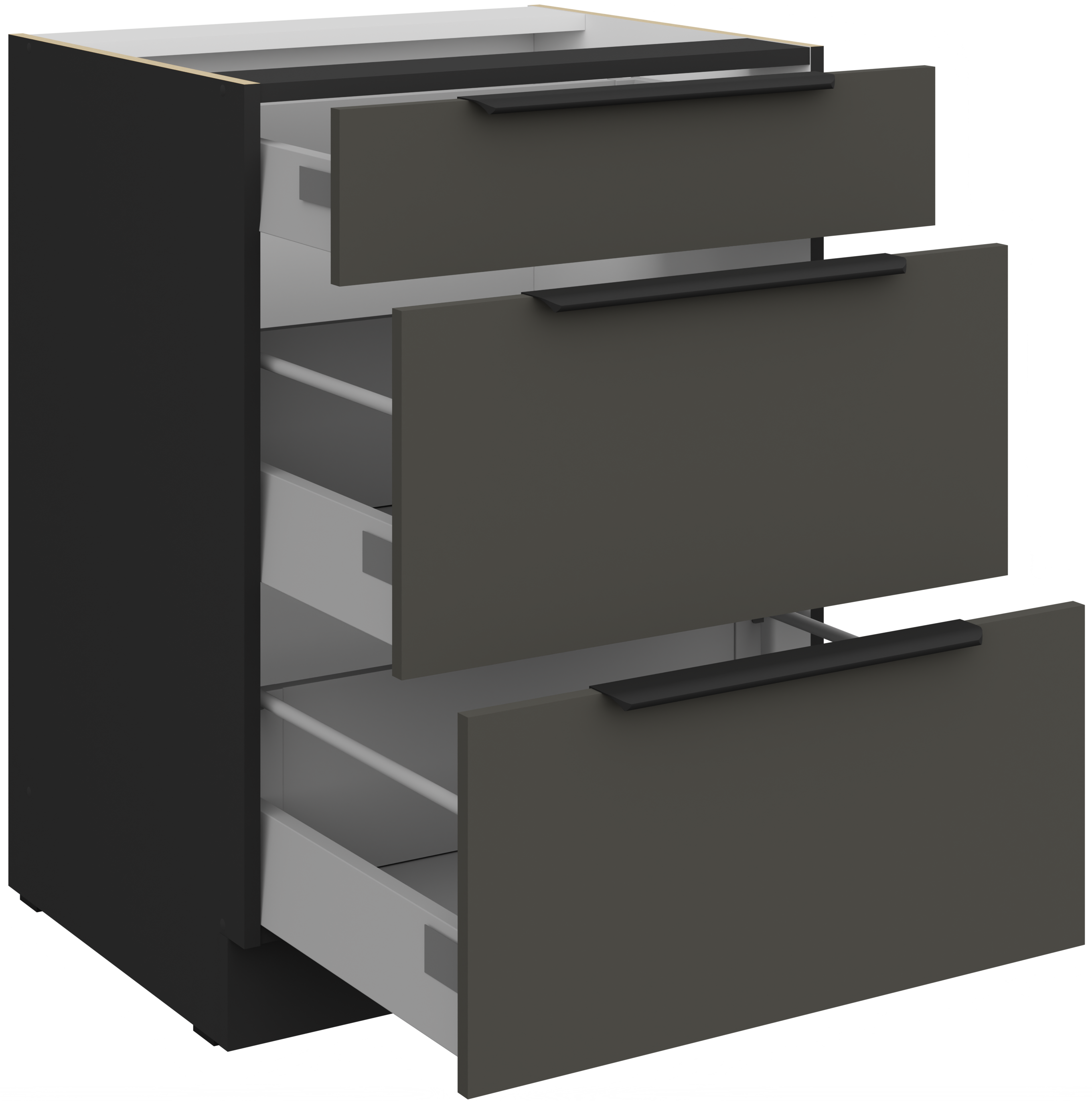 Siva i crna boja stvaraju savršenu ravnotežu između topline i elegancije. Takva kombinacija boja savršeno se uklapa i uz svjetlije i uz tamnije podne obloge i zidove, pa će se kuhinjski sastav Aria lako uklopiti u različite stilove unutarnjeg uređenja – od industrijskog do skandinavskog. Crno-aluminijski ručkice Edge UA-HEXA s čistim linijama dodaju dašak suvremenosti i profinjenosti, a istovremeno omogućuju udobno i sigurno otvaranje fronti i ladica.