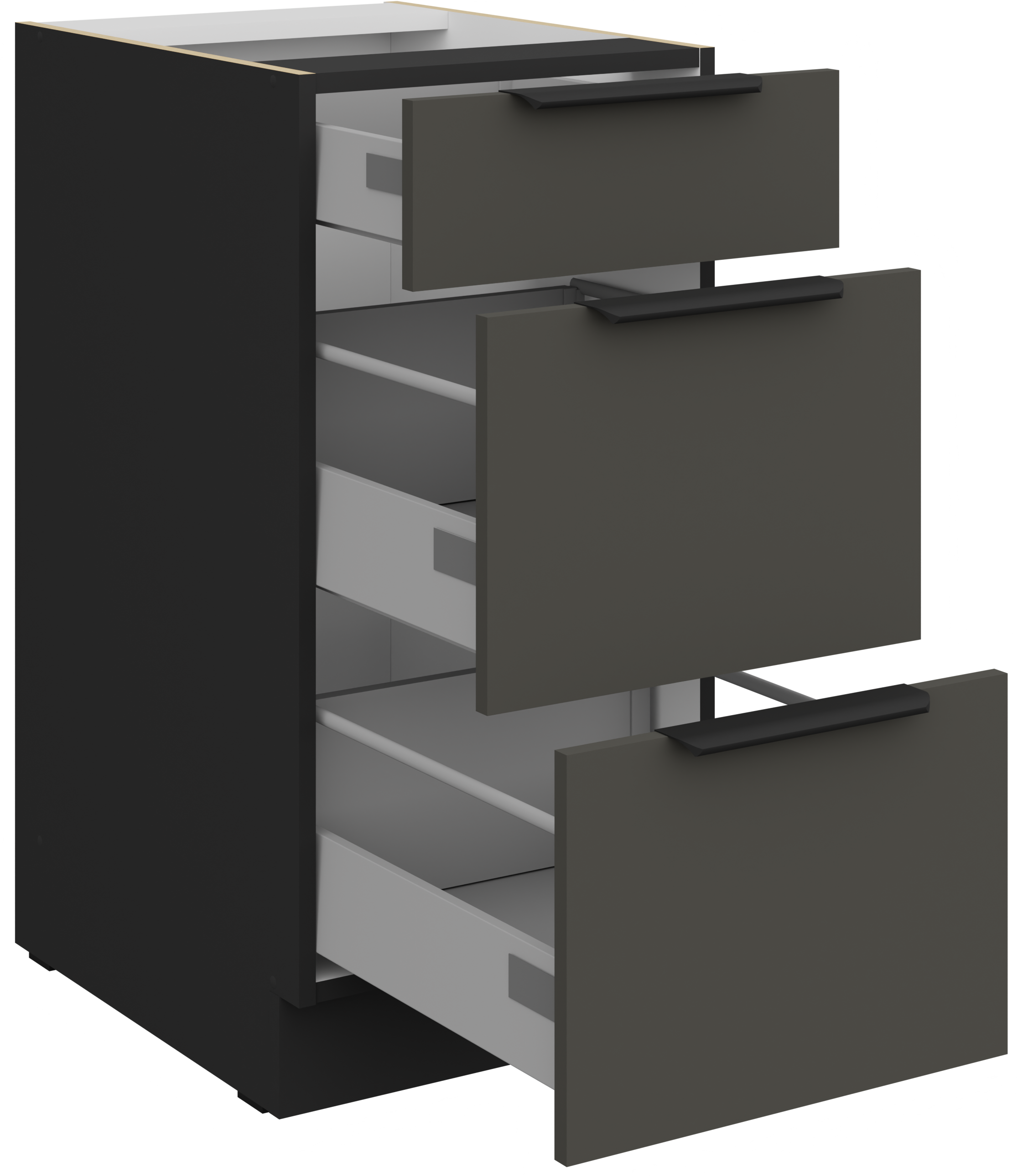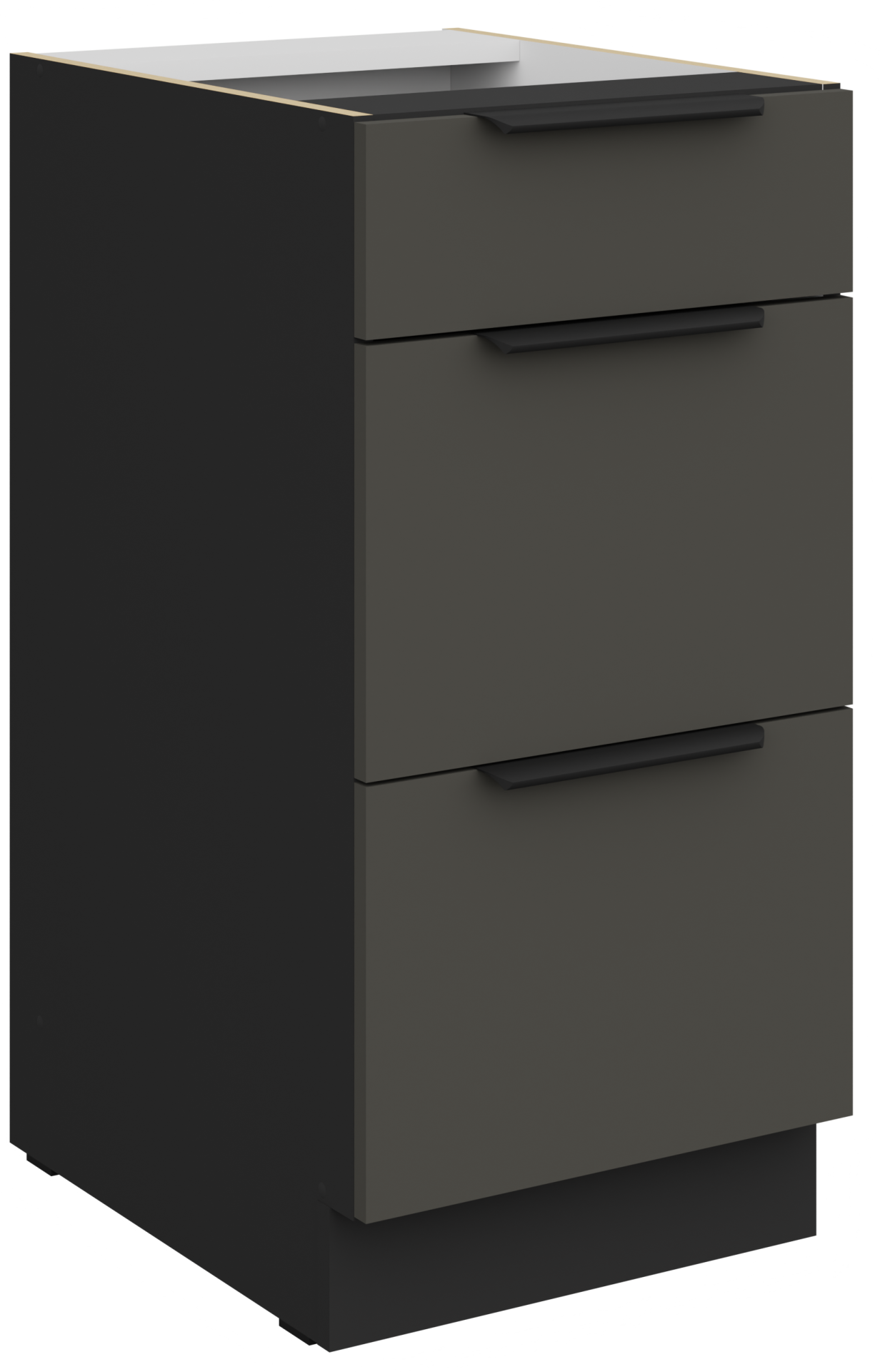 Siva i crna boja stvaraju savršenu ravnotežu između topline i elegancije. Takva kombinacija boja izvrsno se uklapa i uz svjetlije i uz tamnije podne obloge i zidove, pa će se kuhinjski sastav Aria lako uklopiti u različite stilove unutarnjeg uređenja – od industrijskog do skandinavskog. Crno-aluminijski rukohvati Edge UA-HEXA s čistim linijama dodaju dašak suvremenosti i profinjenosti, a ujedno omogućuju udobno i sigurno otvaranje fronti i ladica.