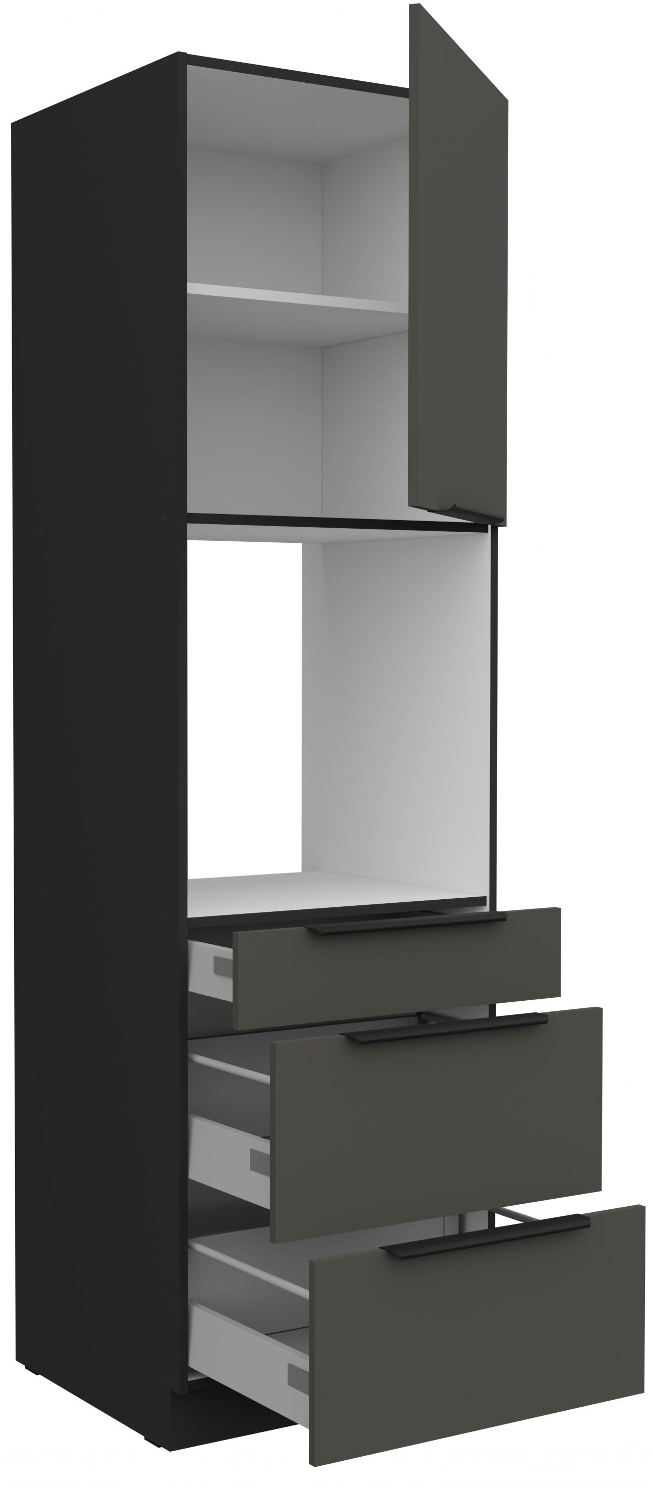 Siva i crna boja stvaraju savršenu ravnotežu između topline i elegancije. Takva kombinacija boja odlično se uklapa i uz svjetlije i uz tamnije podne obloge i zidove, pa će se kuhinjski sastav Aria lako uklopiti u različite stilove unutarnjeg uređenja – od industrijskog do skandinavskog. Crno-aluminijski ručkice Edge UA-HEXA s čistim linijama dodaju dašak suvremenosti i profinjenosti, a istodobno omogućuju udobno i sigurno otvaranje fronti i ladica.