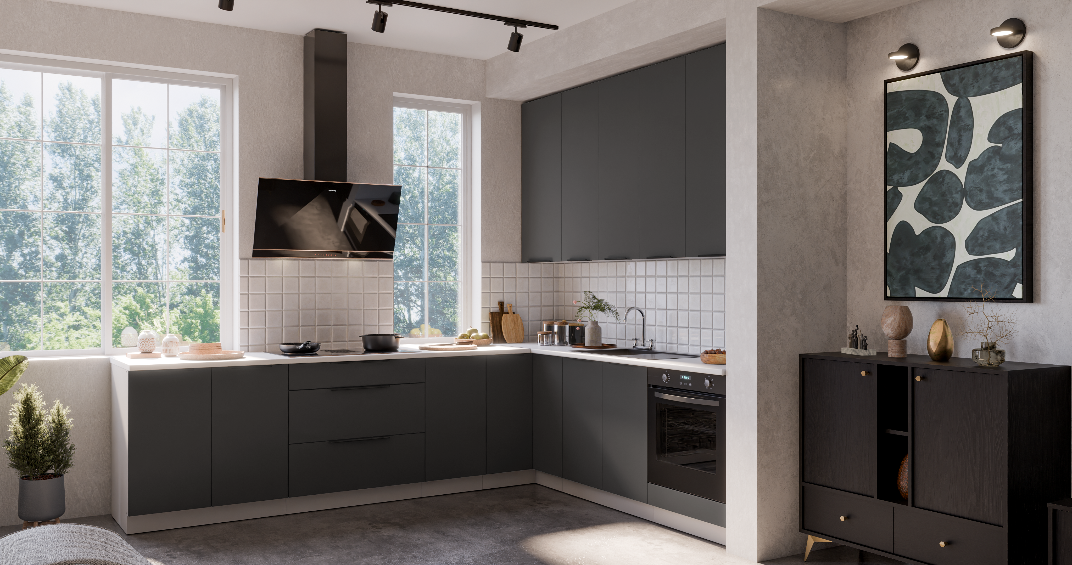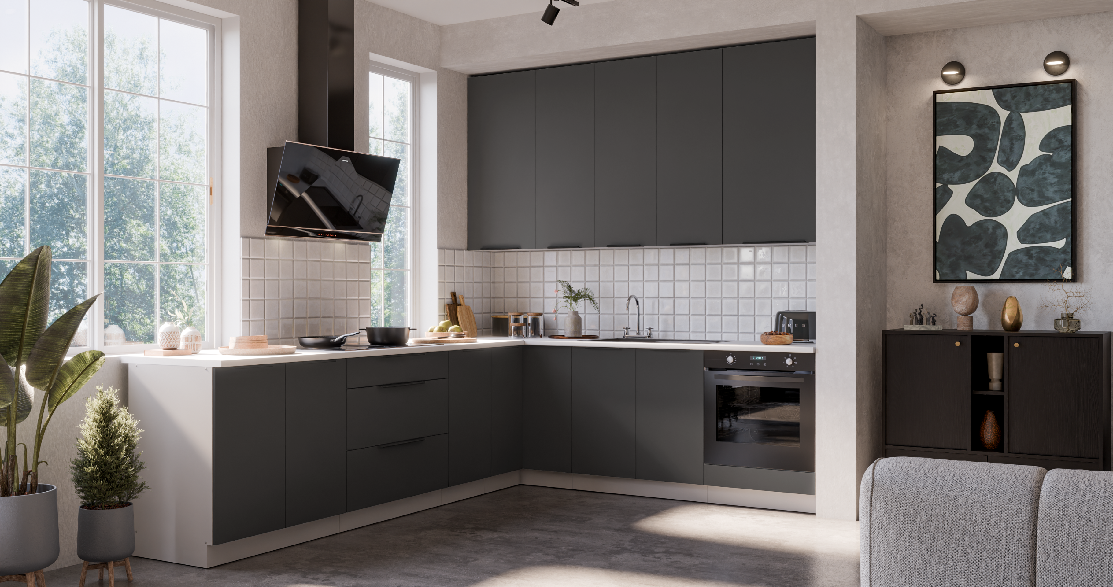 Čiste linije i neutralna paleta boja omogućuju da se kuhinja Aria lako nadopuni različitim dekorativnim dodacima – drvetom, metalom ili čak staklom. To omogućuje stvaranje individualnog ambijenta koji odražava osobni stil vlasnika. Siva boja fronti naglašava suvremeni karakter, dok bijela osnova osigurava svježinu i osjećaj urednosti.